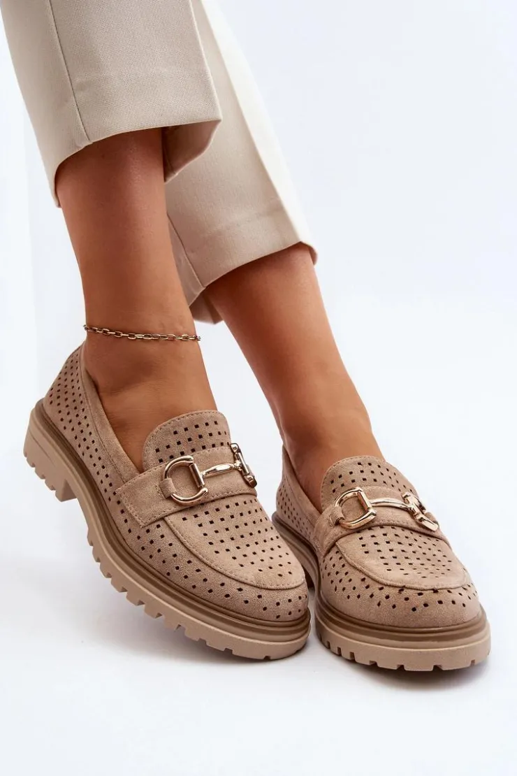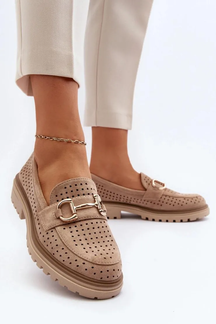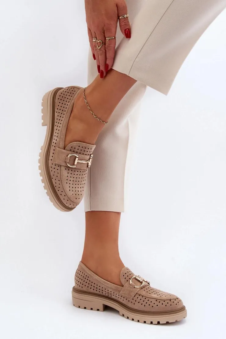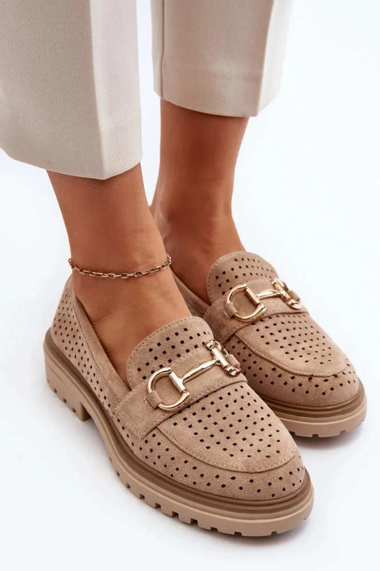 Boto Mokasyny Damskie Zamszowe*Mokasyny Damskie Ażurowe Z Ozdobą Beżowe Talesse
