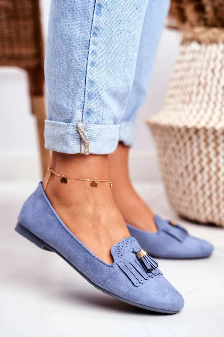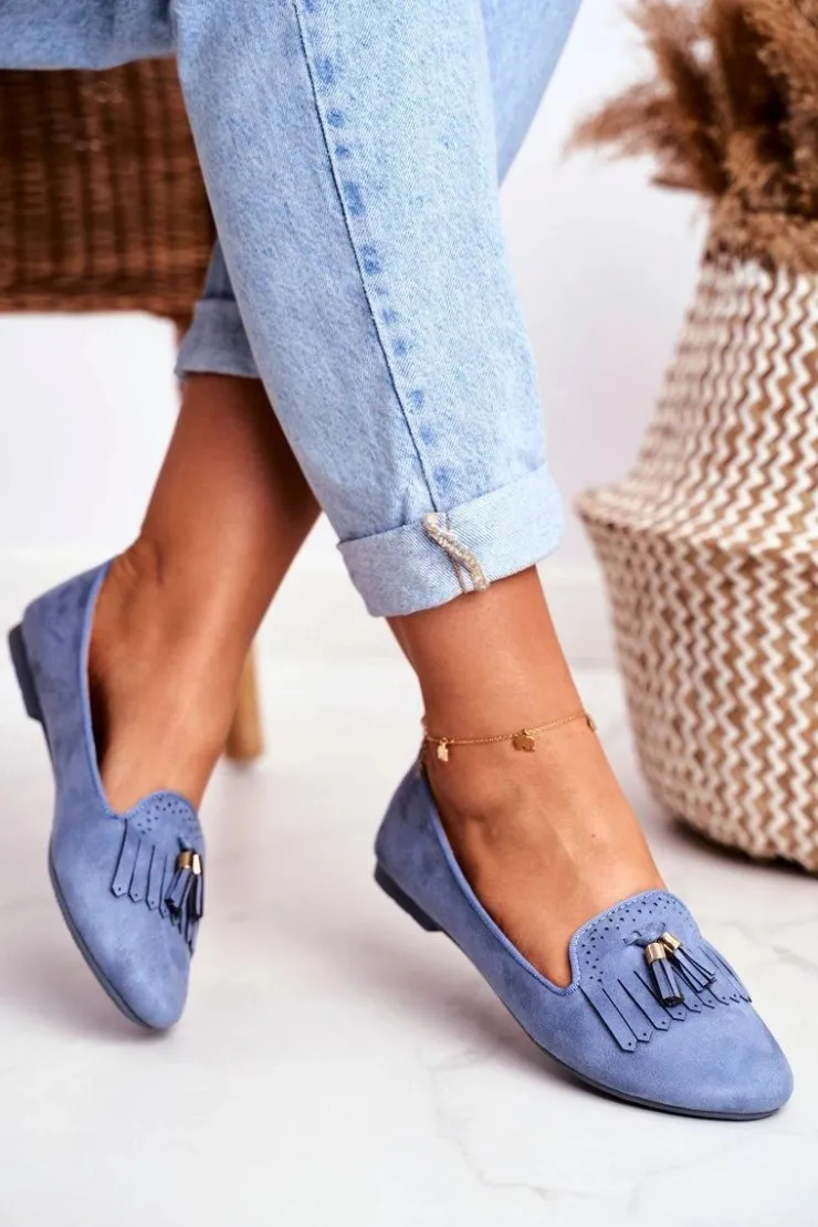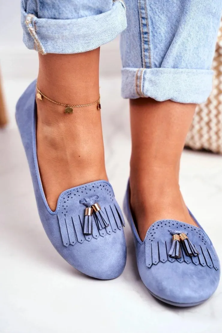 Boto Mokasyny Damskie Zamszowe*Mokasyny Damskie Niebieskie Lordsy Frędzle Therese