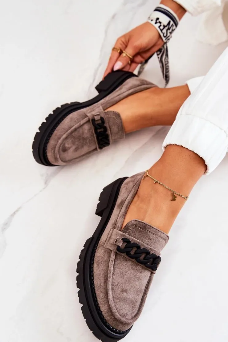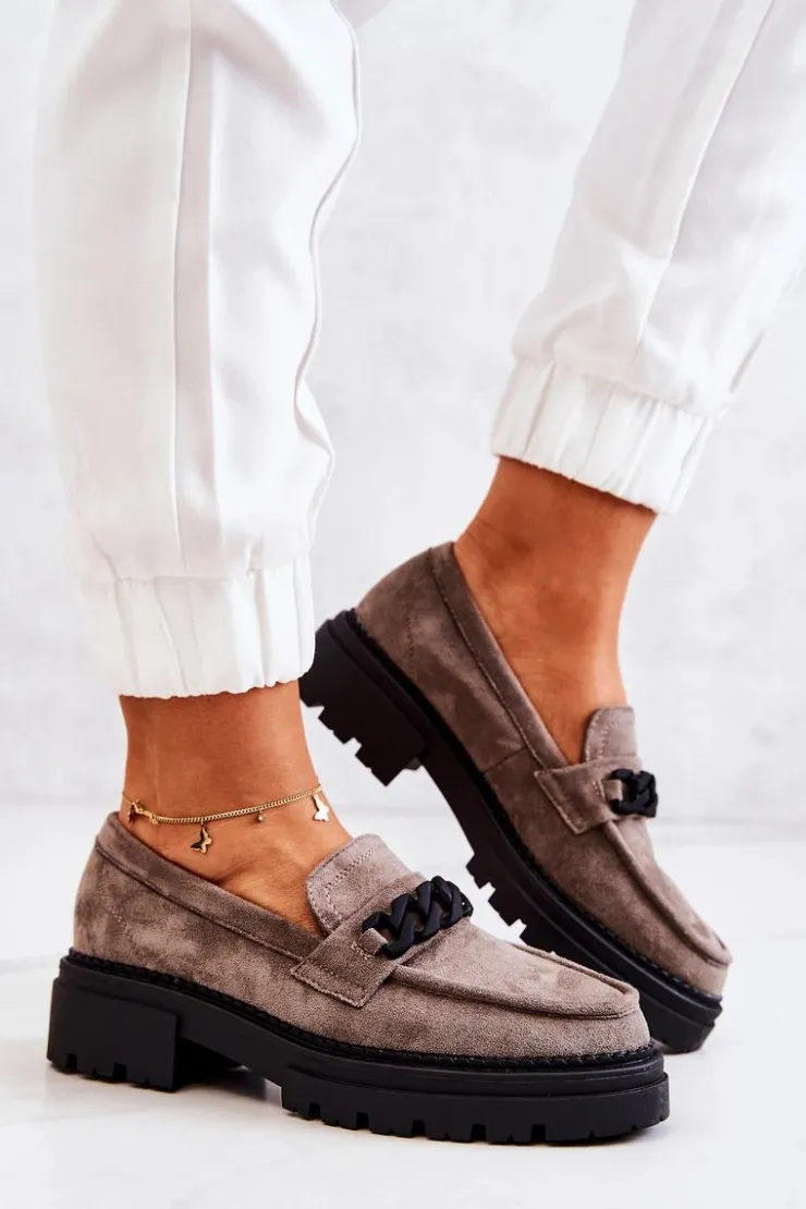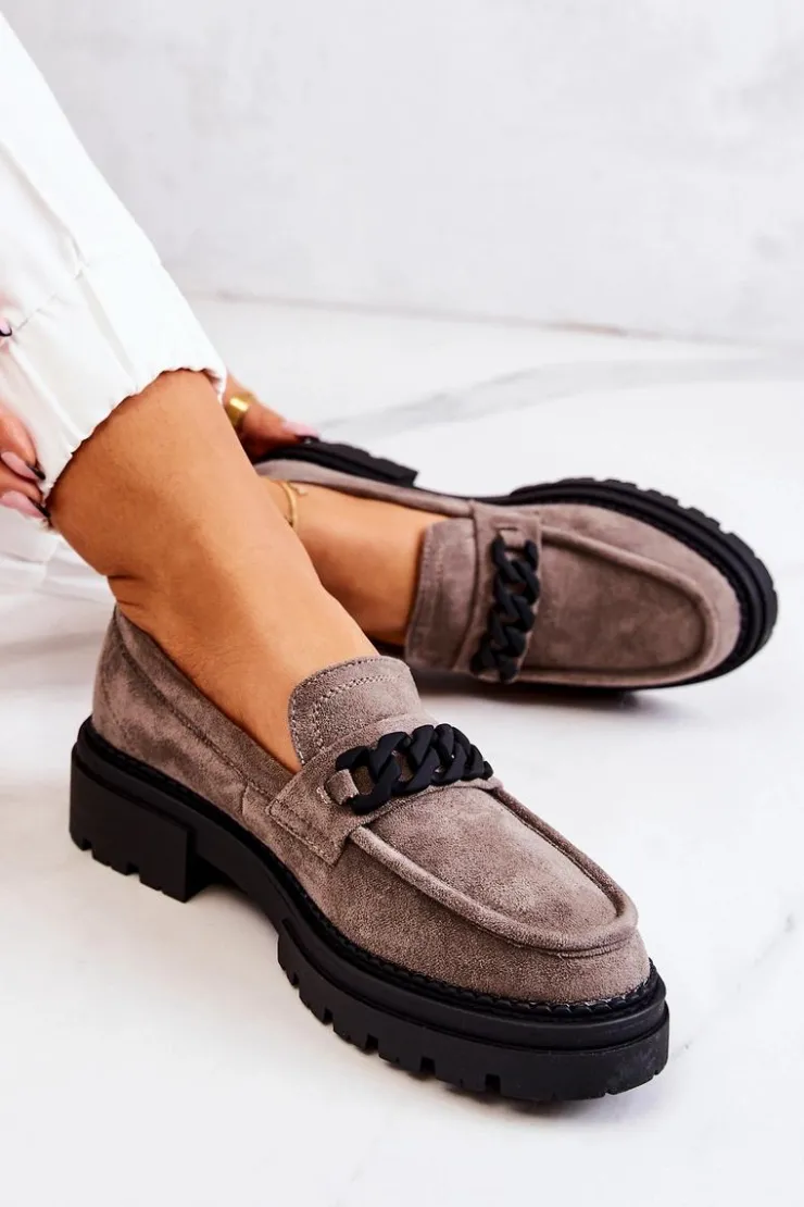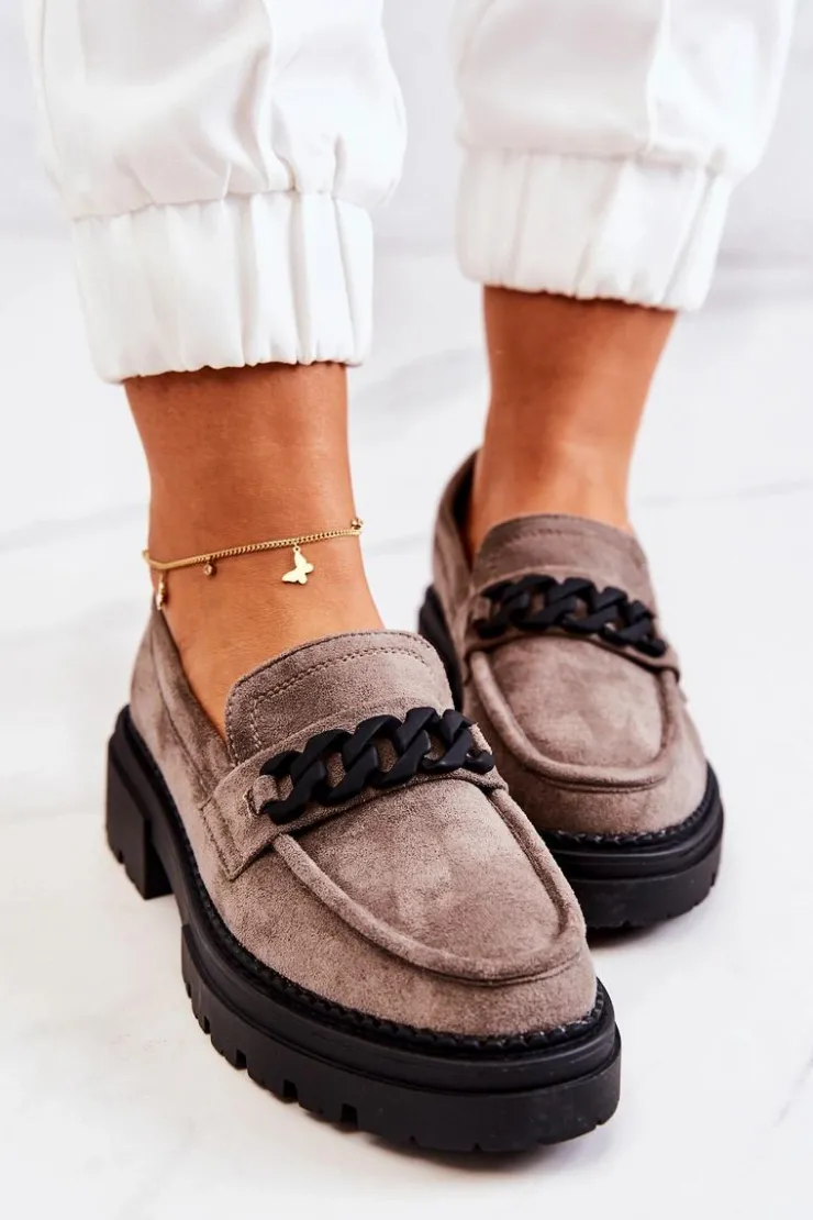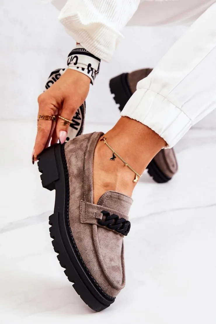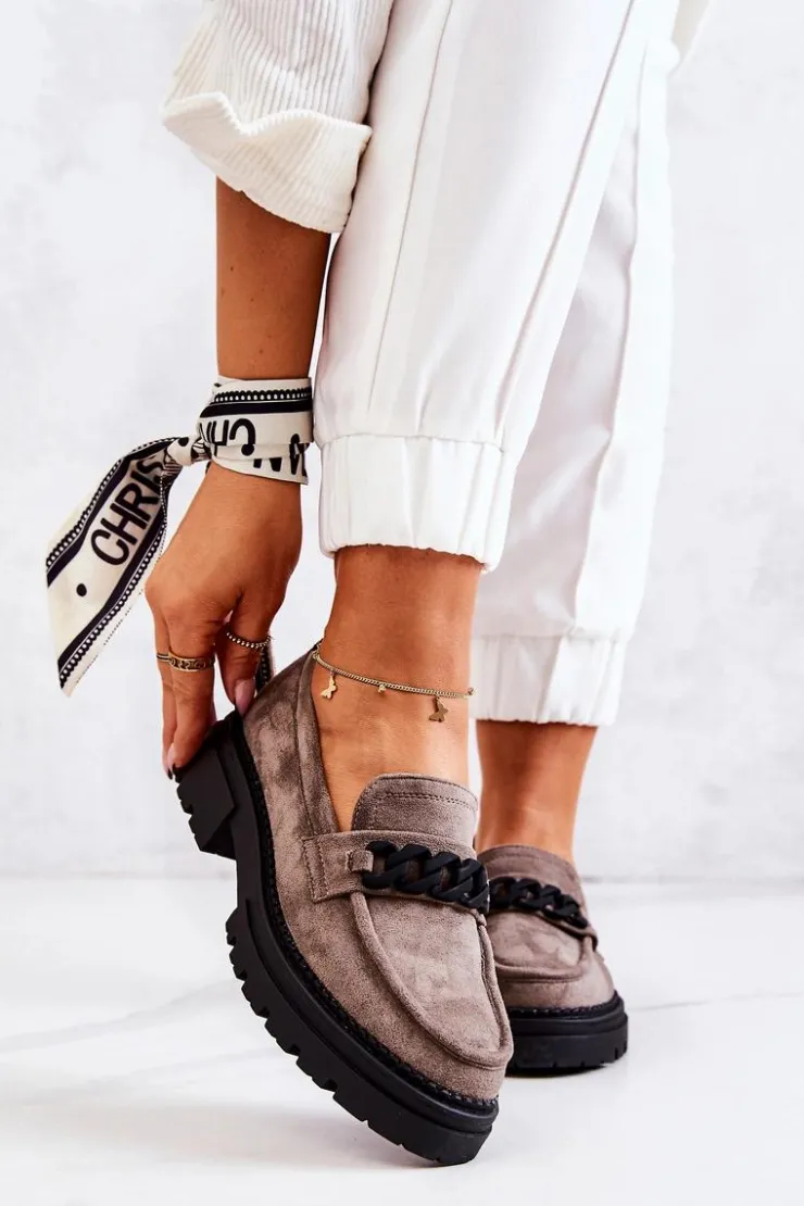 Klasyczne półbuty w stylu przepięknych loaferów marki Laura Fiore! Buty zostały wykonane z wysokiej jakości zamszowej eko skóry. Charakterystyczne zdobienie w postaci łańcucha sprawi, że stworzymy z nimi wiele wspaniałych stylizacji. Posiadają wysoką podeszwę oraz obcas, który uniesie naszą sylwetkę. Miękka wykonana z naturalnej skóry wkładka zadba o komfort podczas użytkowania obuwia. Przy wyborze rozmiaru prosimy sugerować się tabelą rozmiarów.