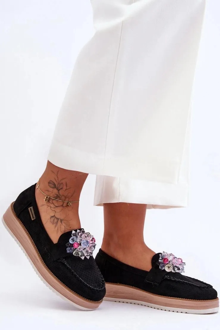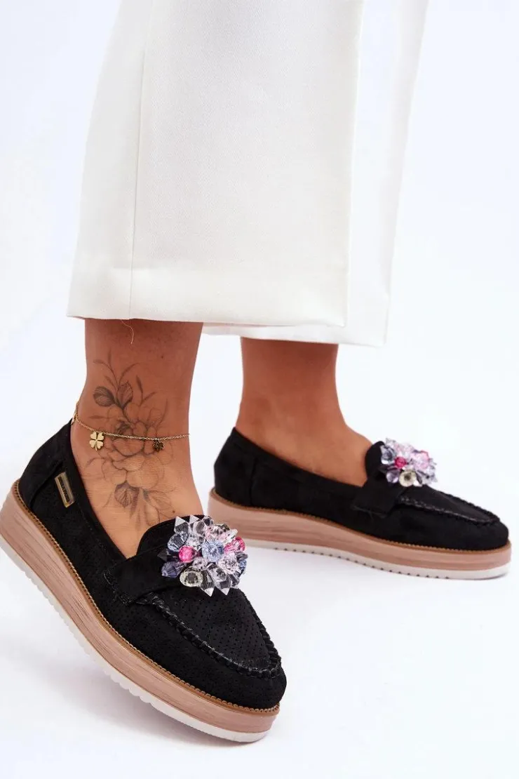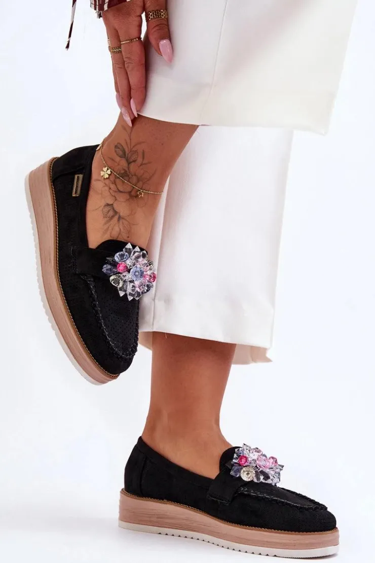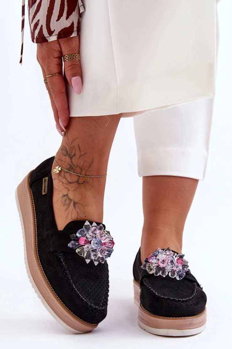 Boto Mokasyny Na Platformie|Mokasyny Damskie Zamszowe*Damskie Mokasyny Na Platformie Z Kamieniami Czarne Elonore