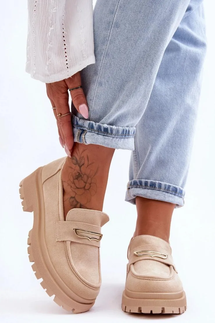 Boto Mokasyny Na Platformie|Mokasyny Damskie Zamszowe*Damskie Zamszowe Wsuwane Mokasyny Beżowe Pure Love