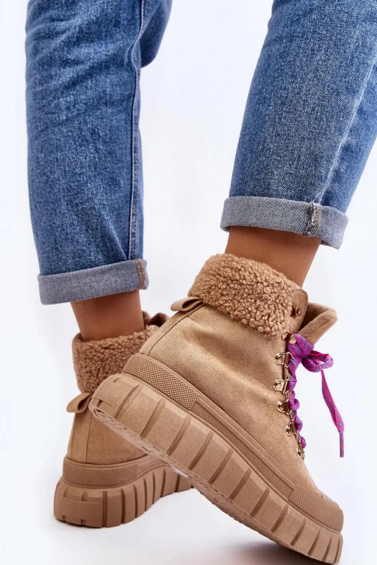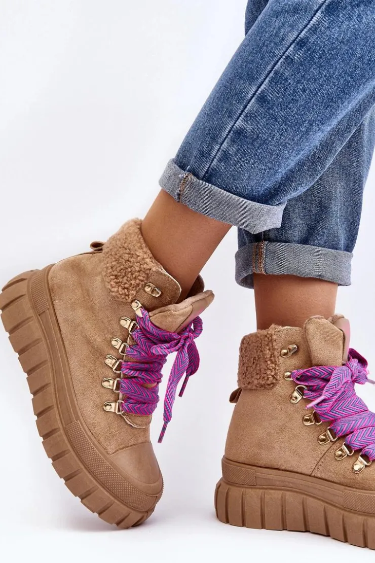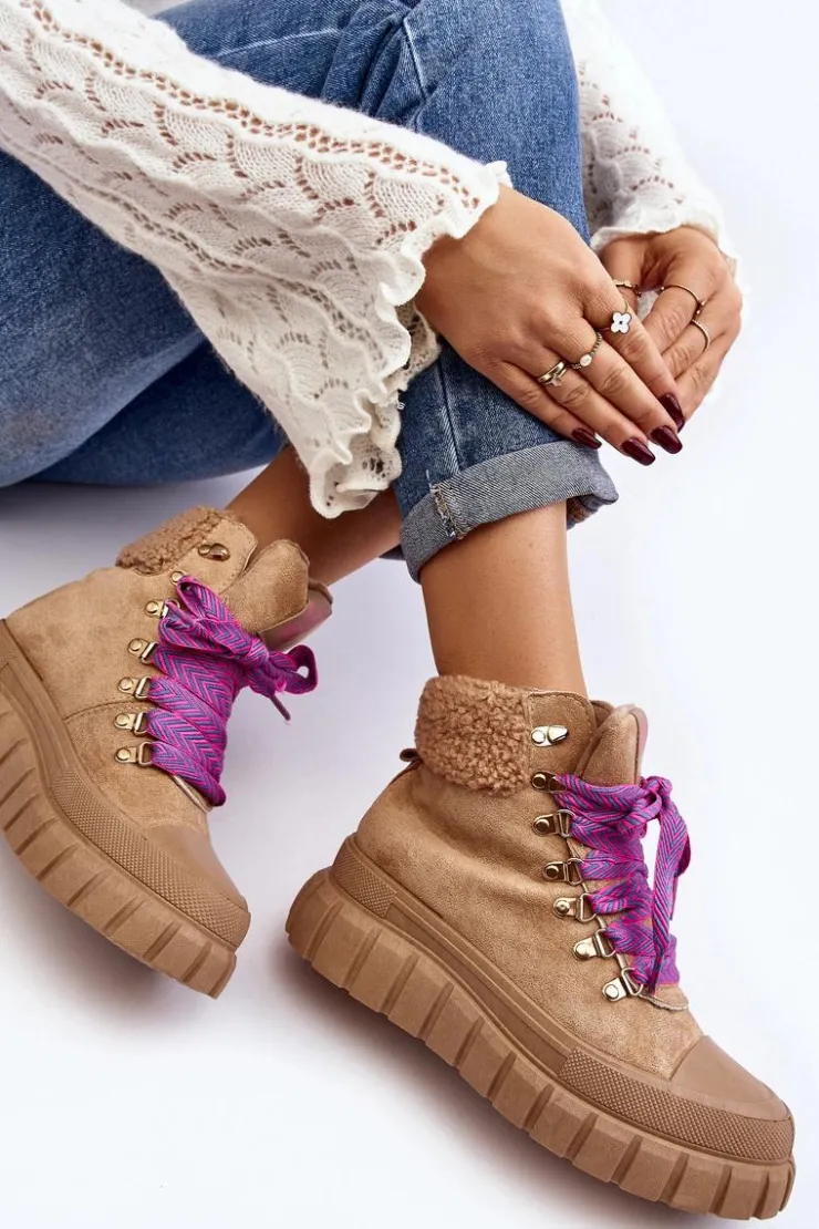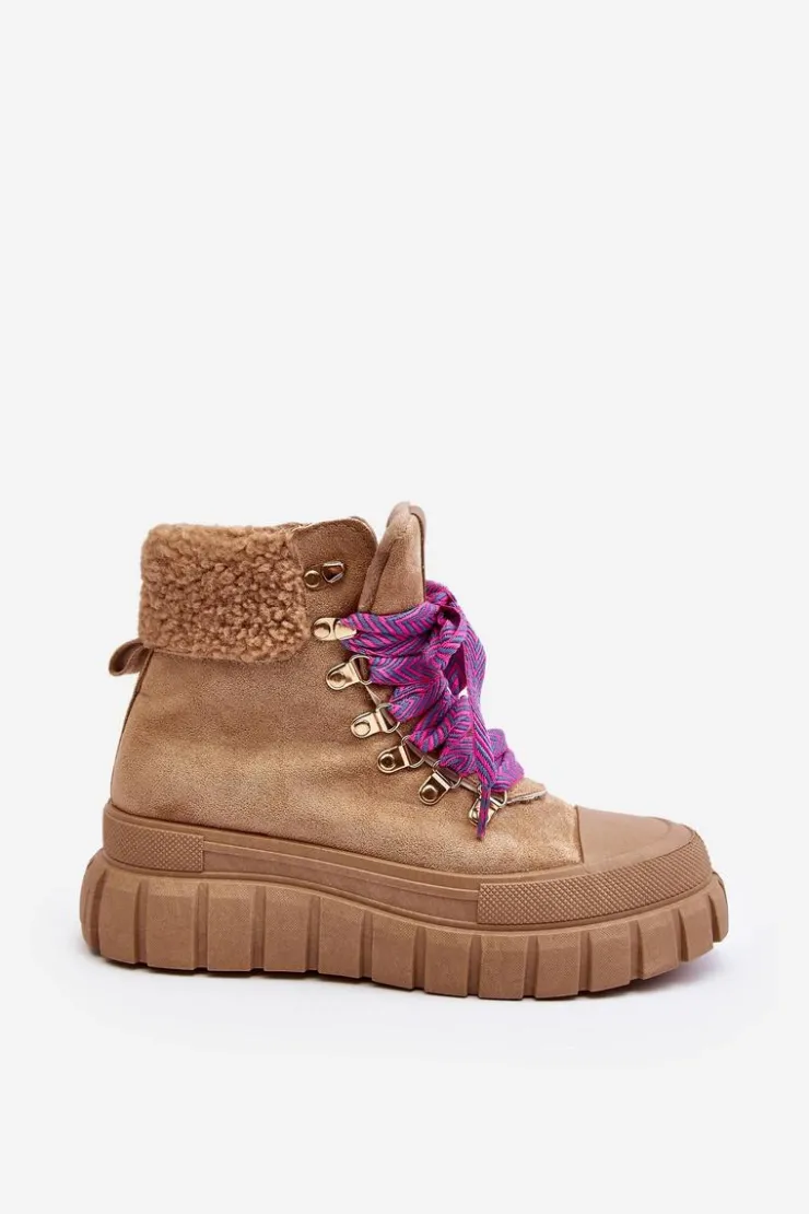 Damskie trapery zostały wykonane z eko zamszu. Osadzone na masywnej platformie z gumowego tworzywa. Wnętrze zostało ocieplone kocem obuwniczym, co zapewnia komfort i ciepło podczas chłodniejszych dni. Noski są zaokrąglone, co dodaje butom subtelnego uroku. Model klasycznie sznurowany. Modne obuwie stanowi doskonały dodatek do Twojej szafy! Przy wyborze rozmiaru prosimy sugerować się tabelą rozmiarów.