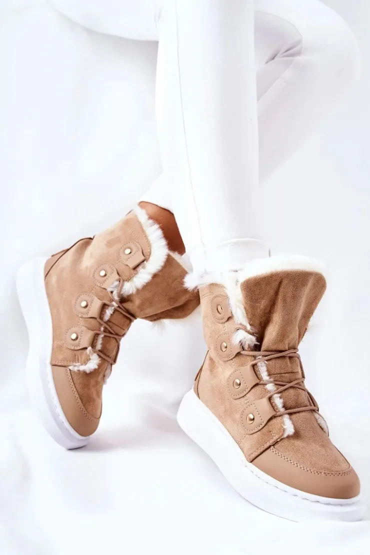 Piękne botki wykonane z zamszowej eko skóry. Posiadają bardzo ciepłe wypełnienie w postaci miłego w dotyku futerka. Buty posiadają platformę oraz wiązanie, dzięki któremu można dopasować je do własnych potrzeb. Idealnie sprawdzą się w zimowe dni! Nie czekaj dłużej i kup zanim znikną ! Przy wyborze rozmiaru prosimy sugerować się tabelą rozmiarów.