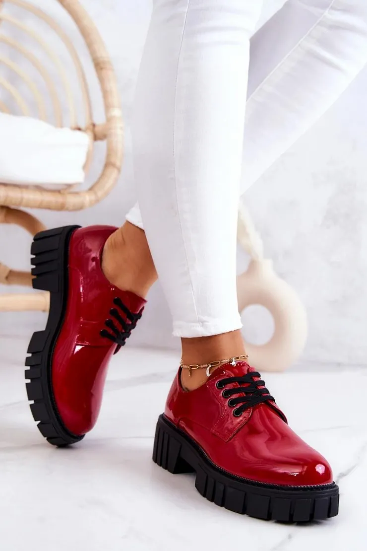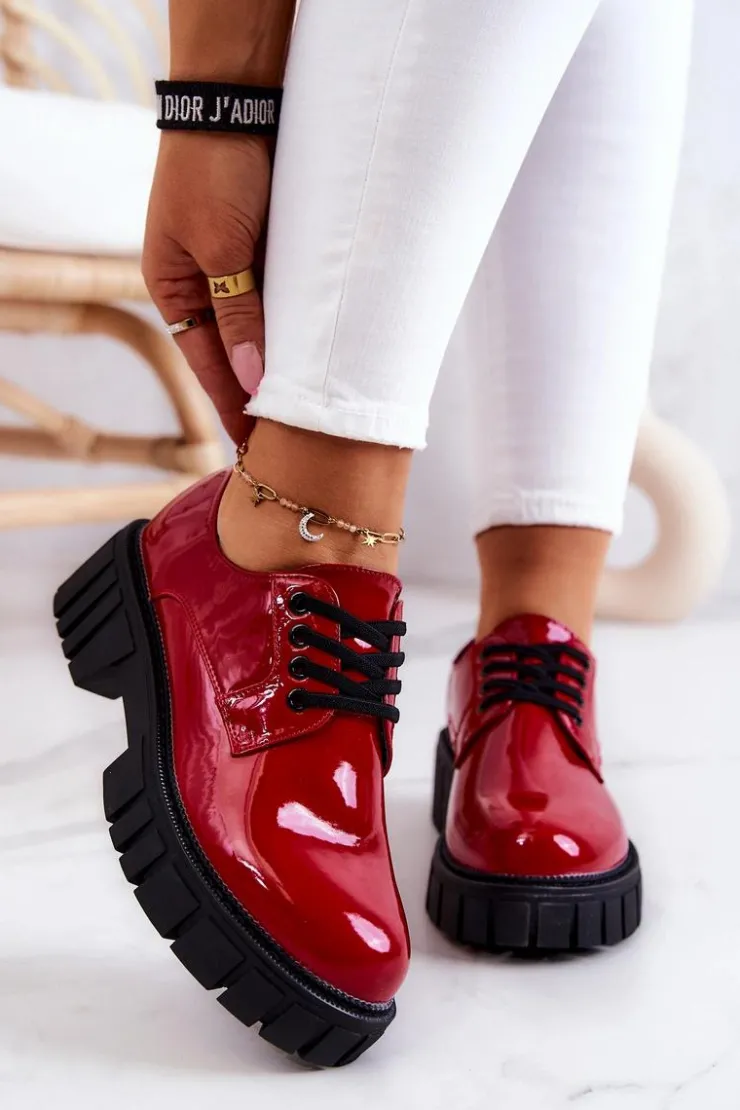 Półbuty zostały wykonane z wysokiej jakości lakierowanej eko skóry. Miękka wkładka ze skóry naturalnej to gwarancja komfortu. Elastyczne wiązanie sprawia, że można dopasować je odpowiednio do tęgości nogi. Niewysoki, masywny obcas zapewni wygodę. Koniecznie powinnaś mieć ten model w swojej szafie! Podczas wyboru rozmiaru prosimy sugerować się tabelą rozmiarów.
