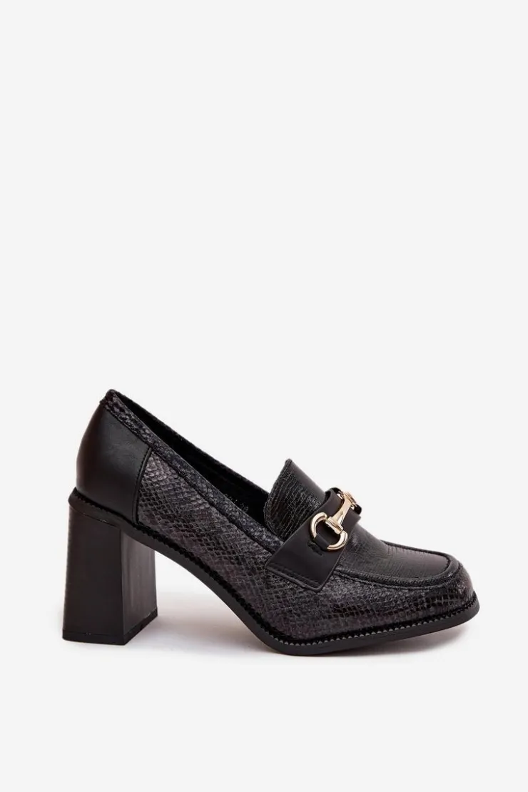 Półbuty damskie wykonane z eleganckiej eko skóry to stylowa propozycja na wiele okazji. Osadzone na stabilnym obcasie typu słupek gwarantują wygodę noszenia i jednocześnie dodają sylwetce lekkości. Klasyczne, zaokrąglone noski sprawiają, że buty prezentują się subtelnie i kobieco, a ozdobne tłoczenie nadaje im wyjątkowego charakteru. Uroku całości dodaje złoty detal, który stanowi elegancki akcent i podkreśla nowoczesny styl obuwia. To model, który świetnie sprawdzi się zarówno w codziennych zestawach, jak i w bardziej oficjalnych stylizacjach, łącząc komfort z ponadczasową elegancją.