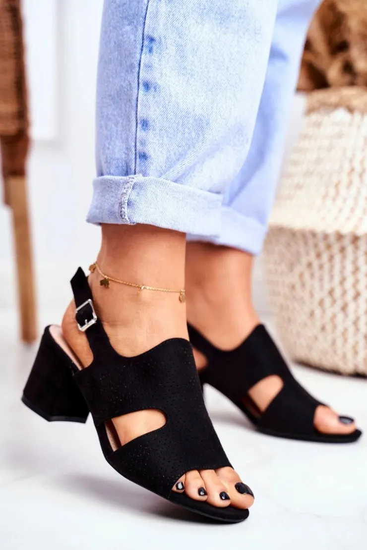 Boto Sandały Ażurowe|Sandały Na Obcasie*Sandały Damskie Na Słupku Ażurowe Czarne Valery