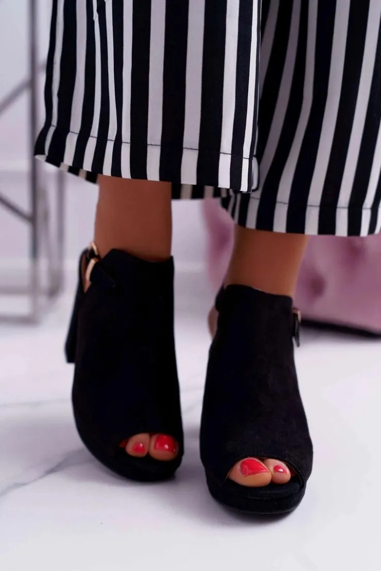 Boto Sandały Damskie Na Słupku Z Cholewką Odkryte Palce Czarne Montree