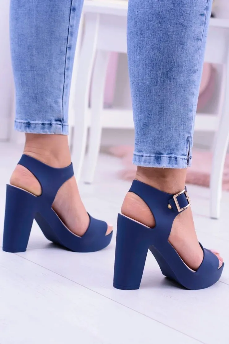Boto Sandały Gumowe|Sandały Na Obcasie*Damskie Gumowe Granatowe Sandały Na Słupku Meliski Viene