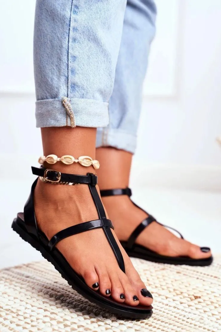 Boto Sandały Gumowe|Sandały Płaskie*Lu Boo Sandałki Rzymianki Japonki Lento Czarne