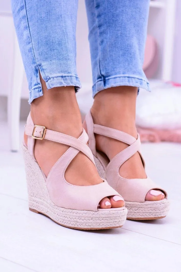 Boto Sandały Na Koturnie*Damskie Beżowe Sandały Na Koturnie Espadryle Elonore