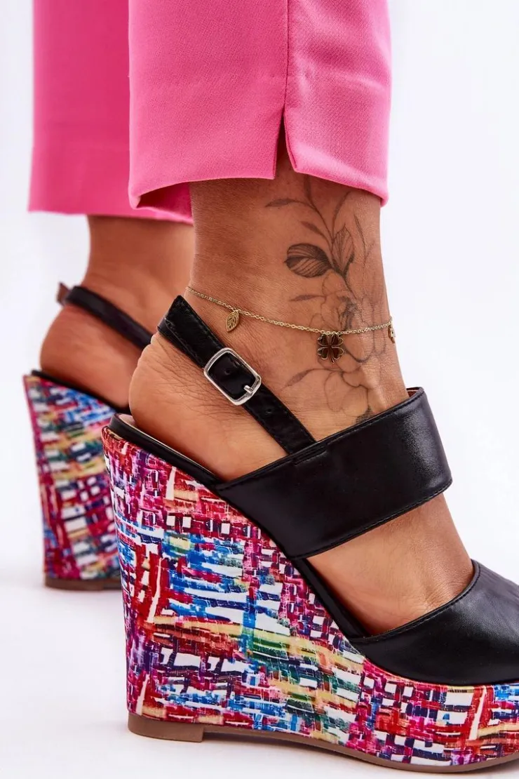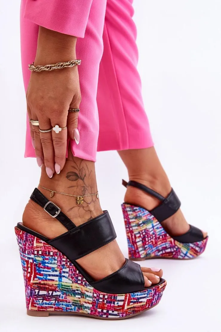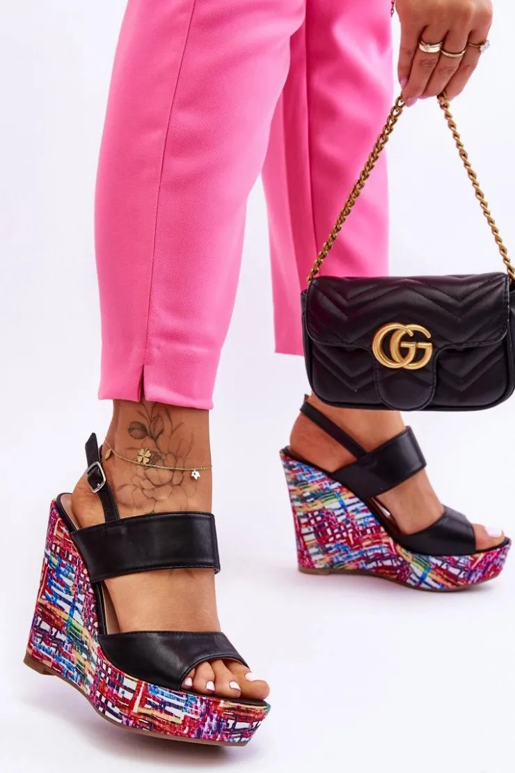 Boto Sandały Na Koturnie*Damskie Sandałki Na Koturnie Czarne Calderia
