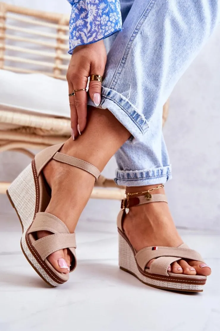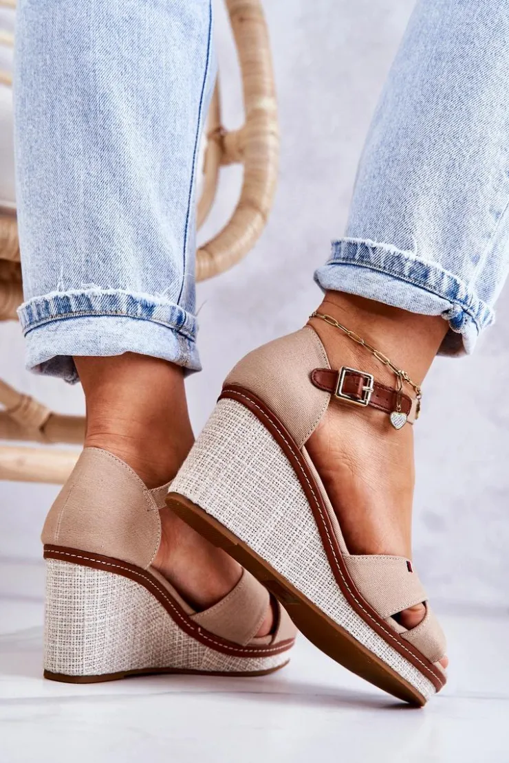 Wyjątkowe sandały na koturnie z plecionką. Buty zostały wykonane z materiału tekstylnego. Zapiętek usztywniany. Miękka wkładka wykonana z połączenia eko skóry oraz materiału tekstylnego zadba o Twój komfort podczas użytkowania. Zapinane wokół kostki na regulowany pasek ze sprzączką. Zdobienie nicią na jednym z pasków. Buty posiadają odkryte palce i zakrytą piętę. Dzięki takiemu obcasowi buty są stabilniejsze od tradycyjnych szpilek. Świetny model na letnie dni! Przy wyborze rozmiaru prosimy sugerować się tabelą rozmiarów.