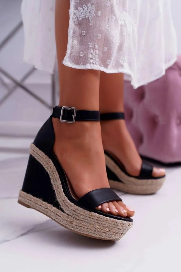 Boto Sandały Na Koturnie*Sandały Damskie Na Espadryku Czarne Devon