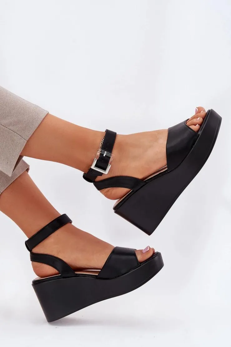 Damskie sandały z eko skóry to elegancka propozycja na letnie dni. Osadzone na koturnie, zapewniają komfort oraz stabilność przez cały dzień. Zapinane na klamrę z regulowanym paskiem, umożliwiają idealne dopasowanie do stopy. Miękka wkładka gwarantuje wygodę, a klasyczny fason sprawia, że te sandały doskonale komponują się z sukienkami oraz spodniami, dodając stylowego akcentu do każdej letniej stylizacji. Przy wyborze rozmiaru prosimy sugerować się tabelą rozmiarów.