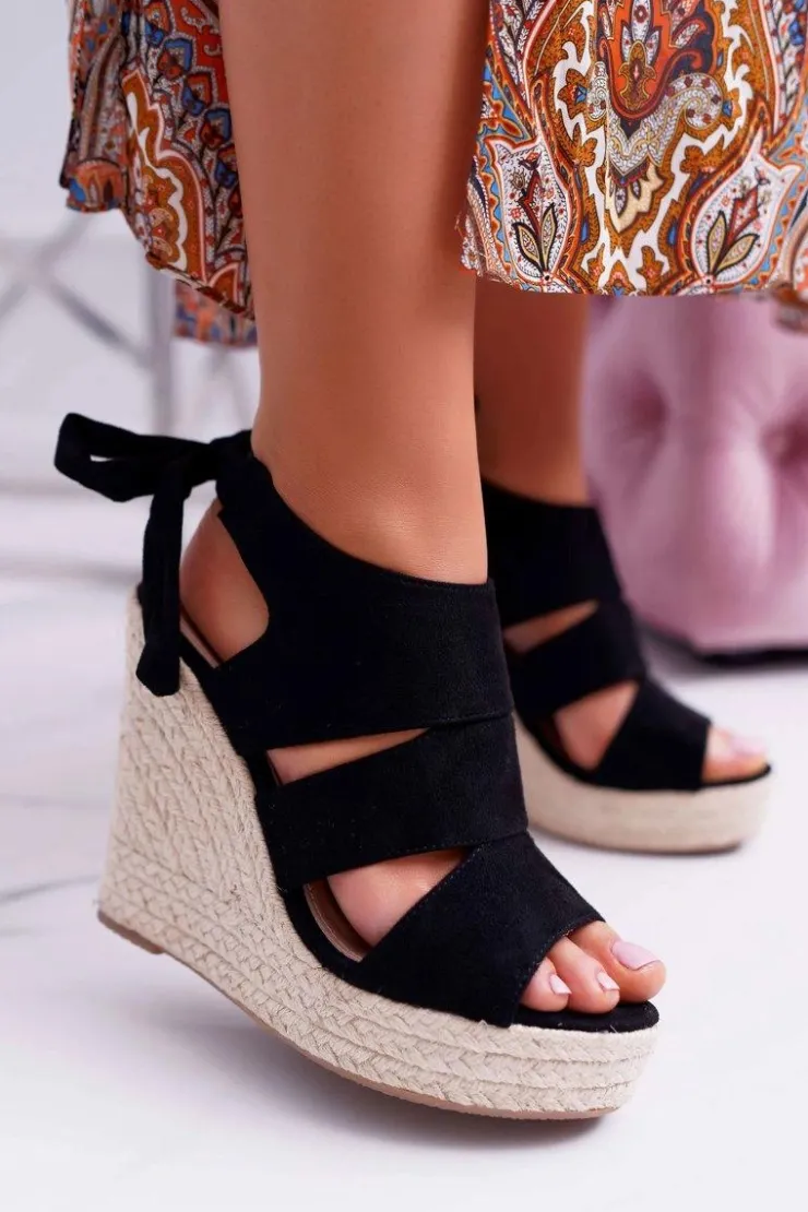 Boto Sandały Na Koturnie*Sandały Damskie Na Koturnie Czarne Yenga