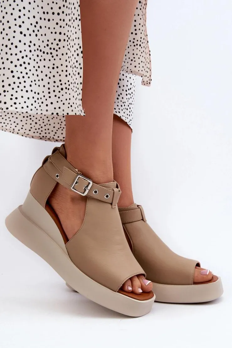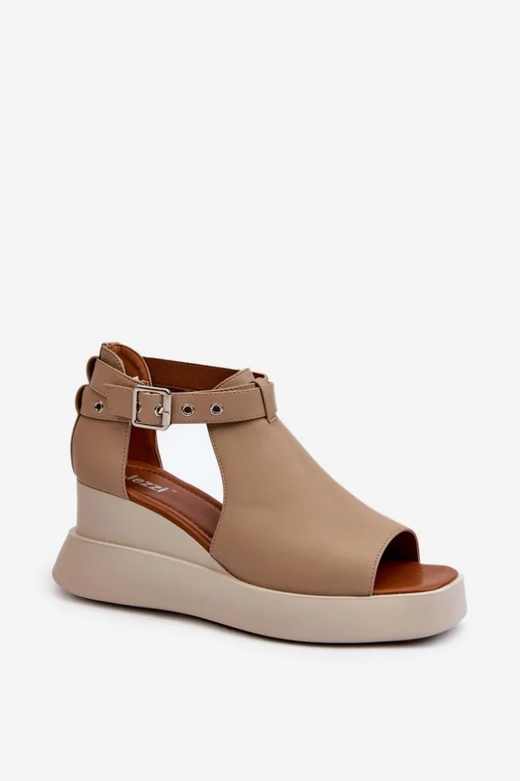 Sandały damskie marki Jezzi wykonane z eko skóry. Platforma i koturn nadają im nowoczesny wygląd i zapewniają wygodę noszenia. Góra cholewki ozdobiona paskami. Te sandały z pewnością będą przyciągać uwagę! Przy wyborze rozmiaru prosimy sugerować się tabelą rozmiarów.