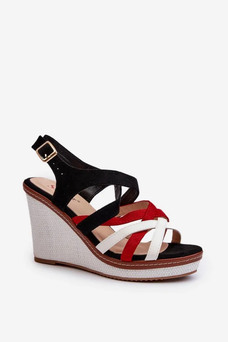 Wyjątkowe sandały damskie na platformie i koturnie. Cholewka została wykonana z eko skóry. Paseczki przeplatają się ze sobą tworząc wyjątkowy efekt. Buty posiadają miękką, eko skórzaną wkładkę. Sandałki są zapinane wokół kostki na sprzączkę z regulowanym paskiem. Podeszwa wykonana z tworzywa sztucznego jest antypoślizgowa, natomiast koturn wraz z platformą zostały ozdobione plecionką. Przy wyborze rozmiaru prosimy sugerować się tabelą rozmiarów.