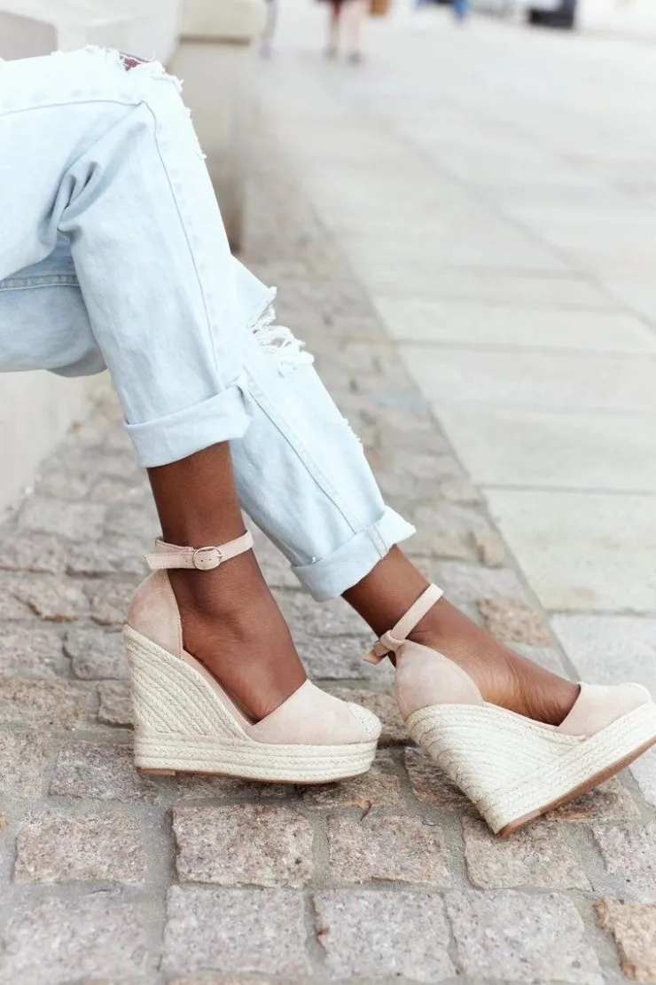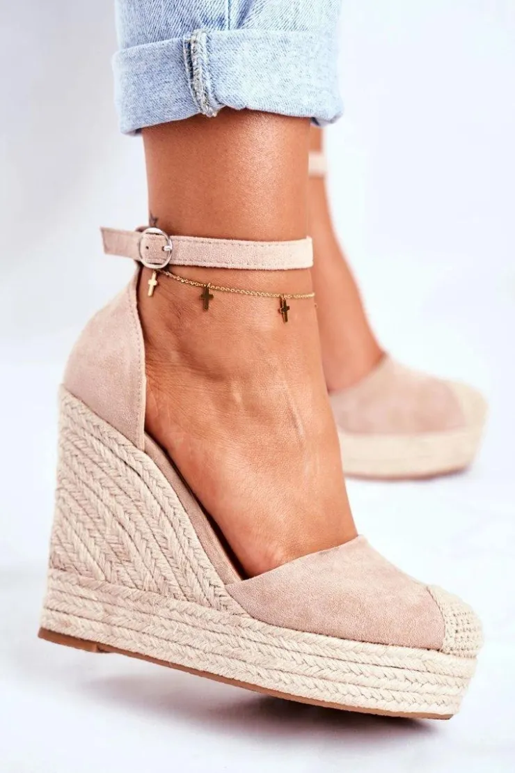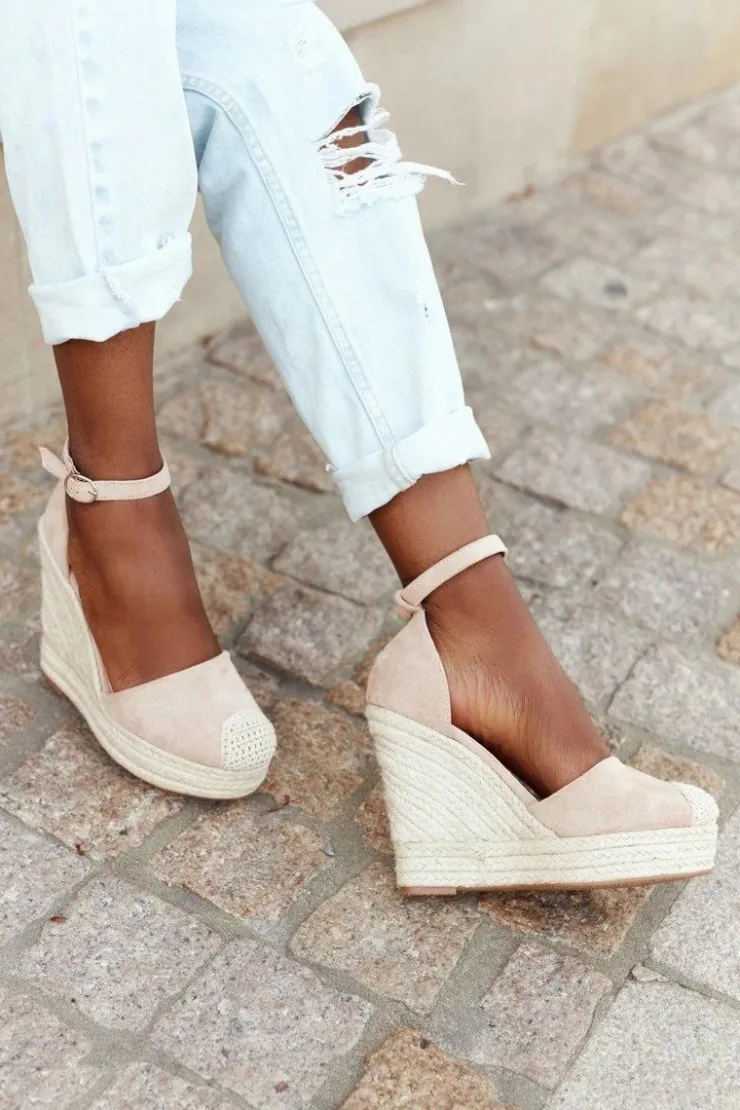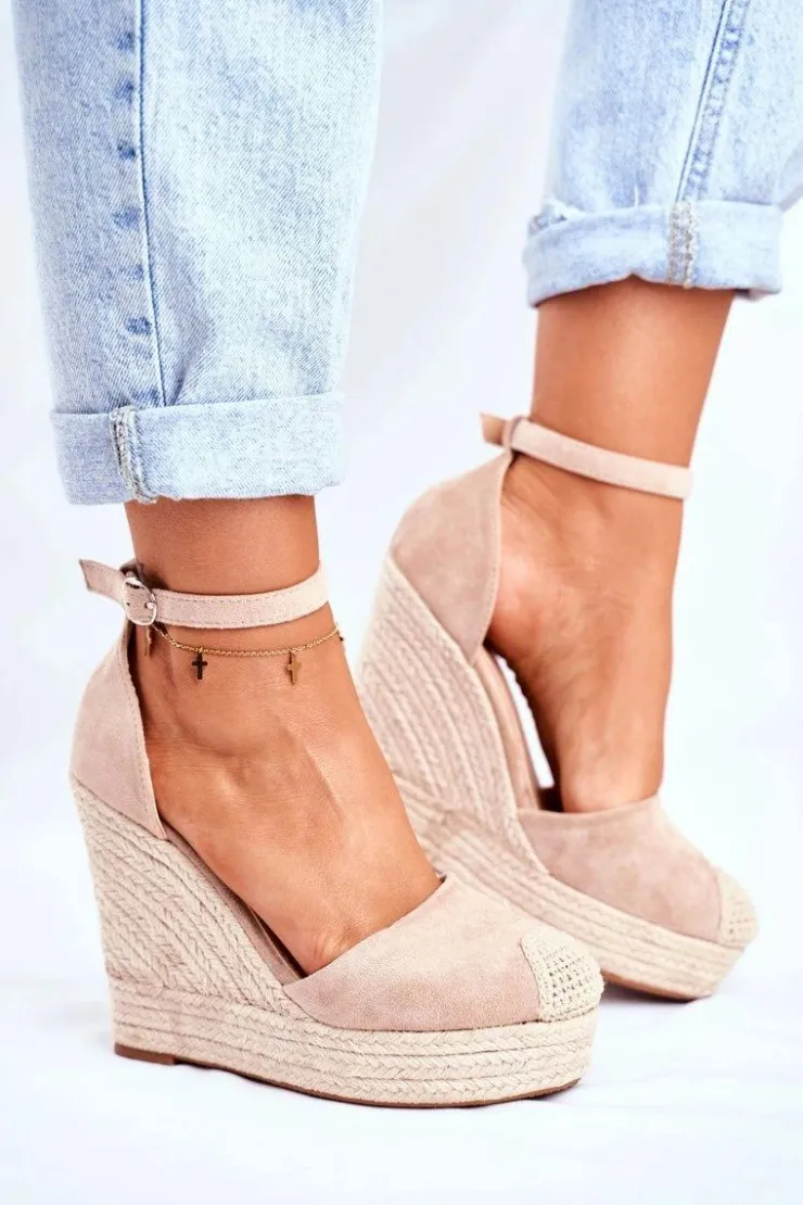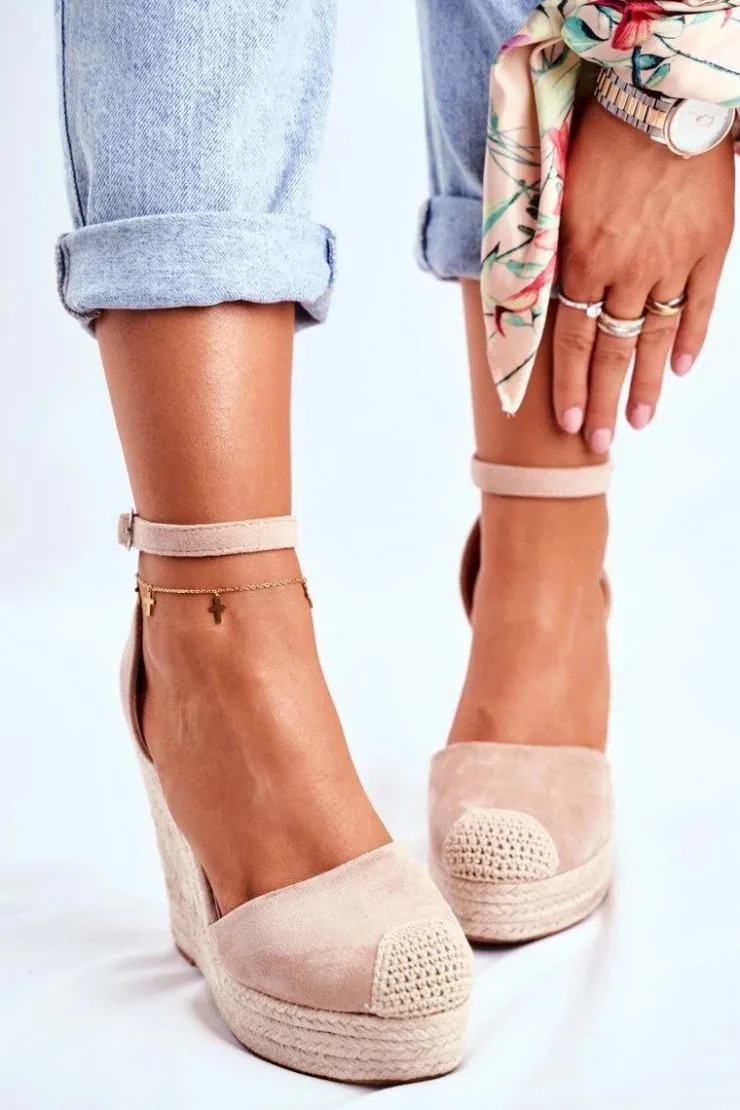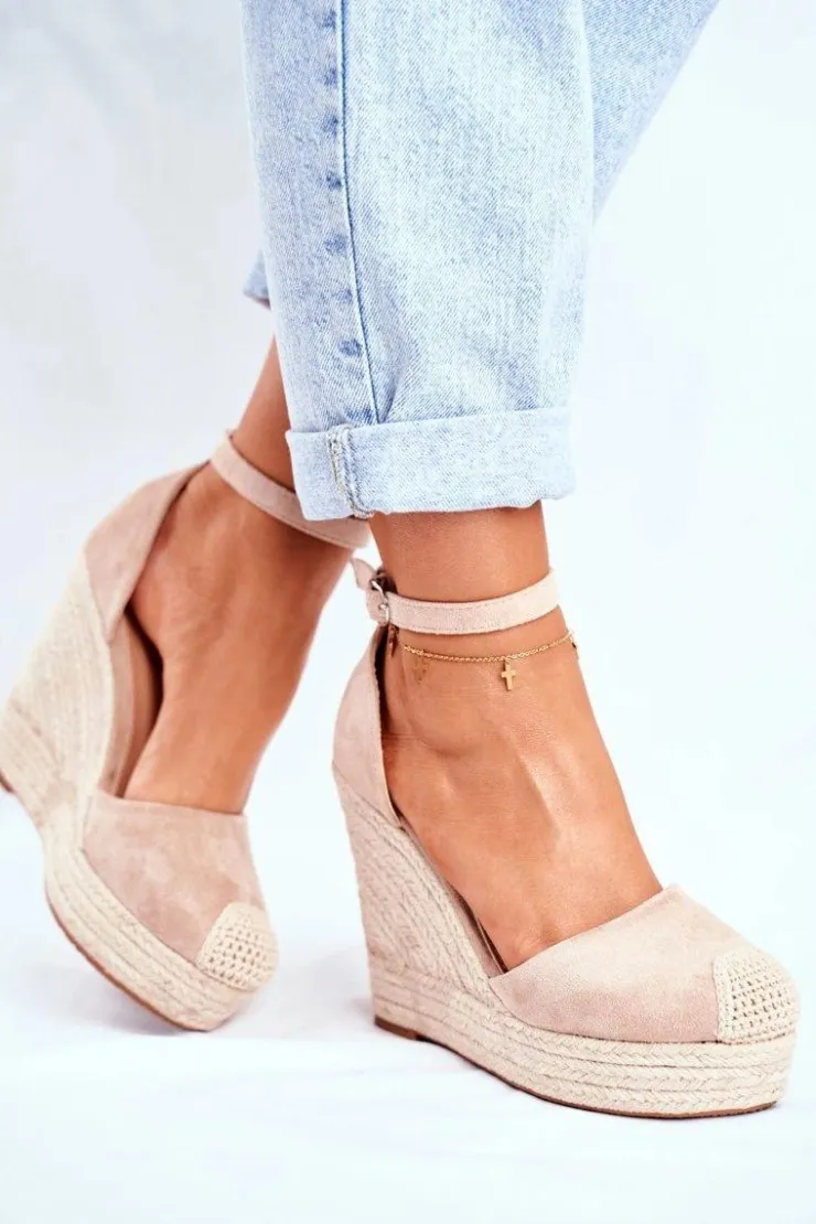 Boto Sandały Na Koturnie*Sandały Na Koturnie Z Plecionką Beżowe Avocado