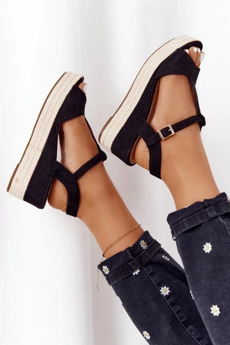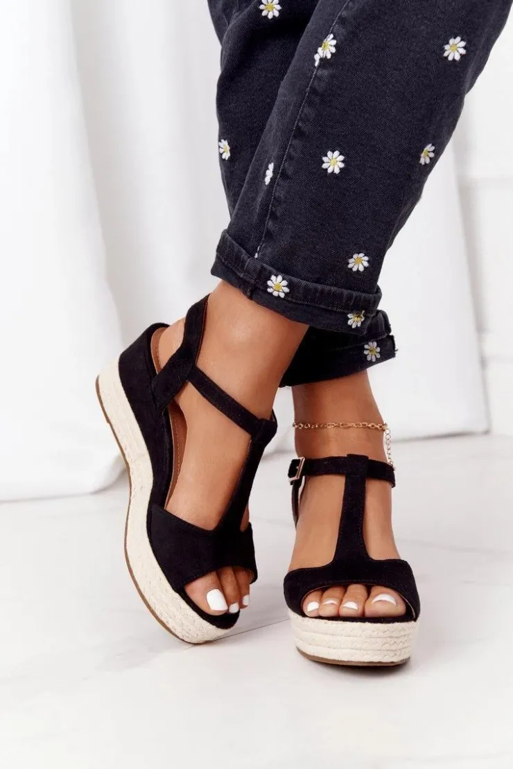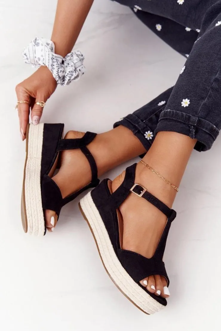 Piękne oraz wygodne sandały na koturnie wykonane z eko zamszu. Buty posiadają miękką wkładkę z eko skóry oraz antypoślizgową podeszwę. Modny fason urozmaici Twoją garderobę! Koniecznie sprawdź całą naszą kolekcję damskich sandałów! Przy wyborze rozmiaru prosimy sugerować się tabelą rozmiarów.