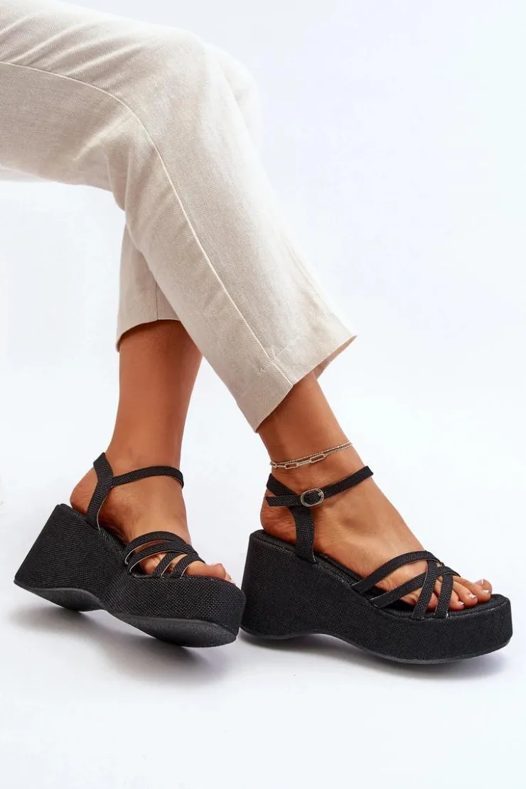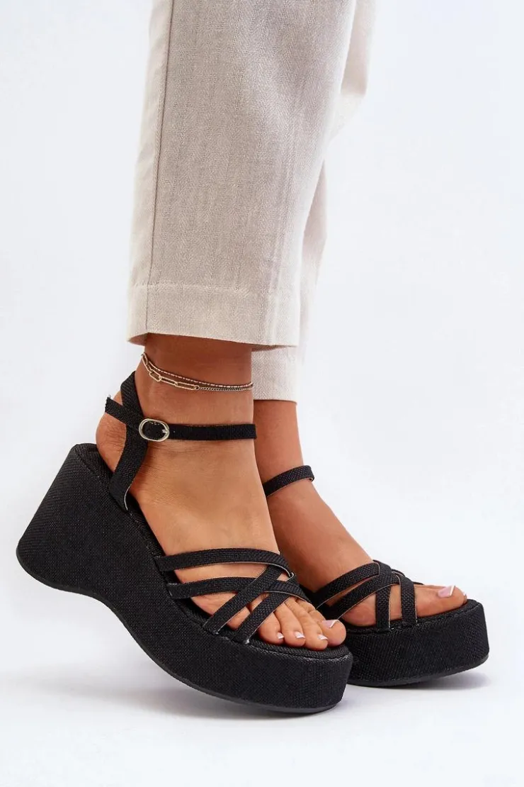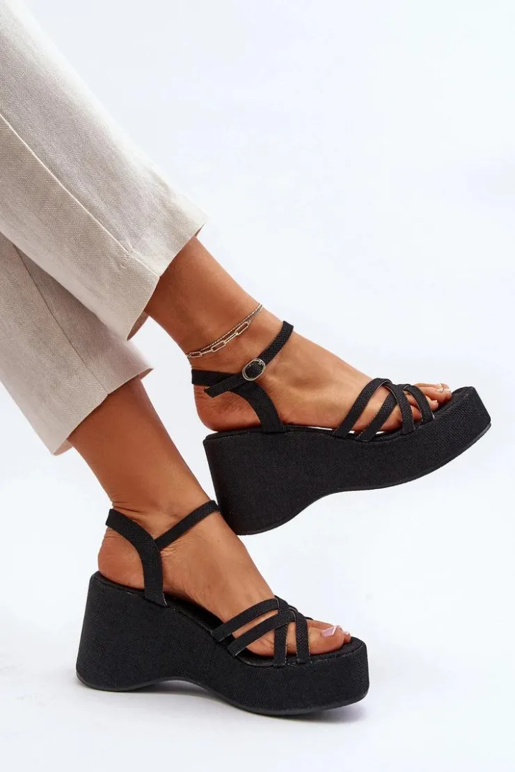 Sandały damskie na platformie i koturnie to nie tylko modne obuwie, ale także gwarancja wygody przez cały dzień. Ich regulowany pasek ze sprzączką zapewnia odpowiednie dopasowanie, a niezwykle miękka wkładka sprawia, że chodzenie w nich to czysta przyjemność, nawet przy długotrwałym użytkowaniu. Te sandały stanowią doskonałe uzupełnienie zwiewnej sukienki lub spódniczki, dodając letniej stylizacji niepowtarzalnego uroku. Przy wyborze rozmiaru prosimy kierować tabelą rozmiarów.