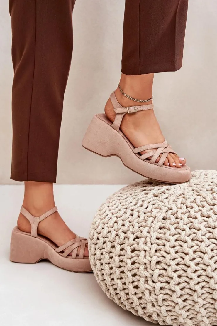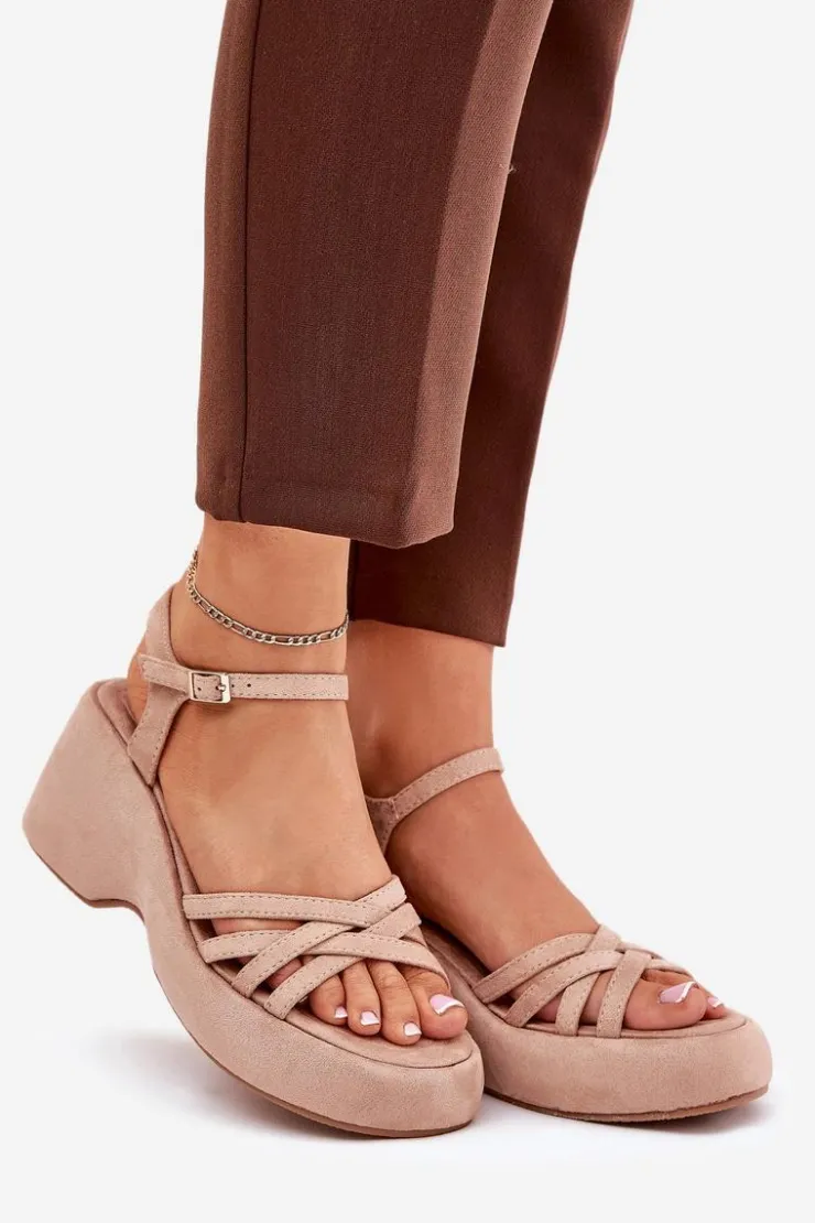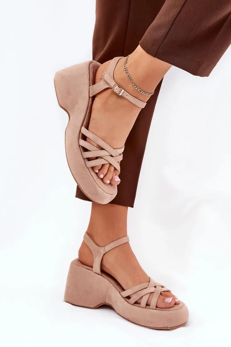 Sandały damskie na platformie i koturnie to nie tylko modne obuwie, ale także gwarancja wygody przez cały dzień. Wykonane z miłego w dotyku eko zamszu. Regulowany pasek ze sprzączką zapewnia odpowiednie dopasowanie, a miękka wkładka sprawia, że chodzenie w nich to czysta przyjemność, nawet przy długotrwałym użytkowaniu. Doskonały wybór na ciepłe dni, które będą pasować do zarówno casualowych, jak i bardziej eleganckich stylizacji. Przy wyborze rozmiaru prosimy kierować tabelą rozmiarów.