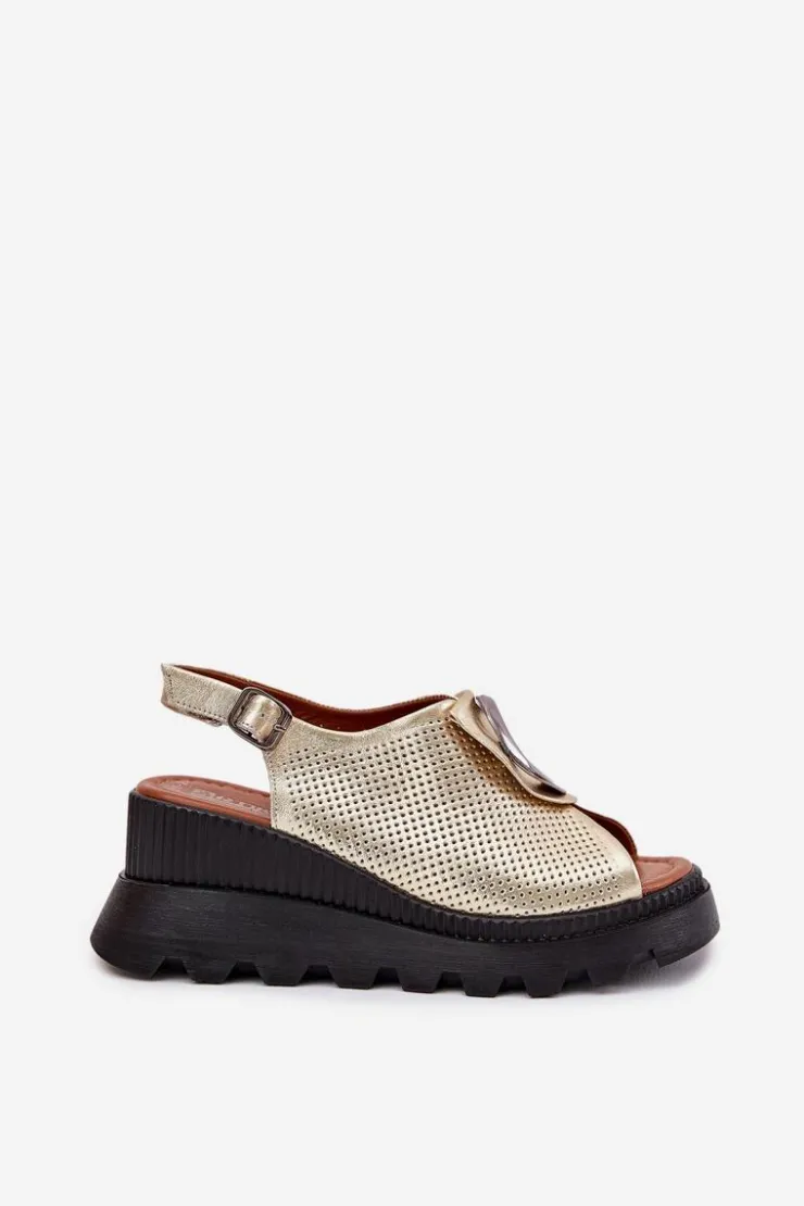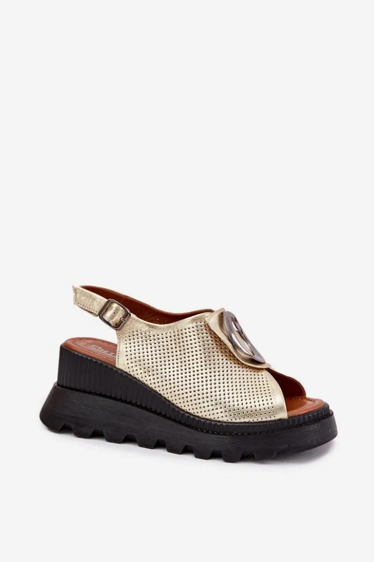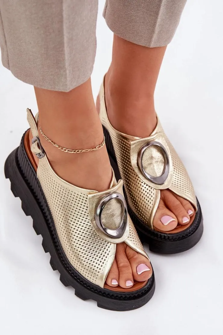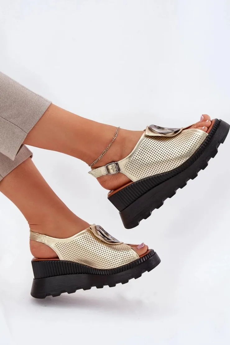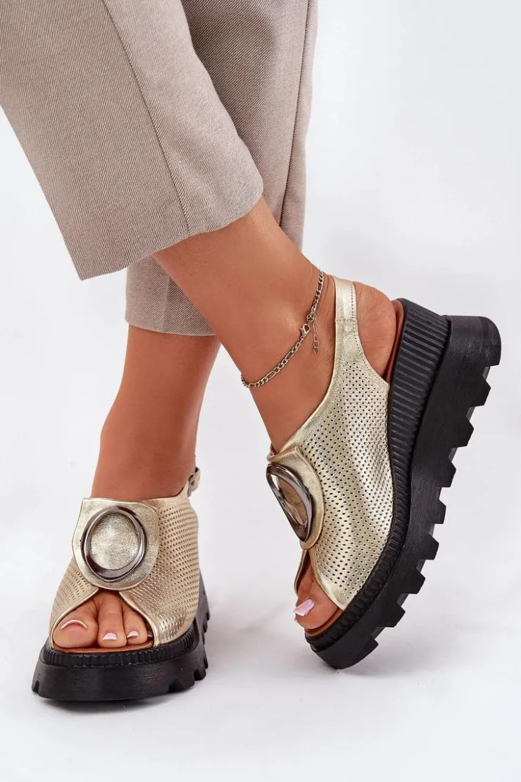 Eleganckie sandały damskie wykonane z naturalnej skóry to doskonała propozycja na ciepłe dni. Osadzone na koturnie, zapewniają wygodę oraz stabilność przez cały dzień. Model wyróżnia się ozdobą z przodu, która nadaje im wyjątkowego charakteru. Skórzana wkładka gwarantuje komfort, a podeszwa z bieżnikiem zapewnia odpowiednią przyczepność, sprawiając, że te sandały łączą elegancję z funkcjonalnością. Idealne do letnich stylizacji, zarówno na co dzień, jak i na specjalne okazje. Przy wyborze rozmiaru prosimy sugerować się tabelą rozmiarów.