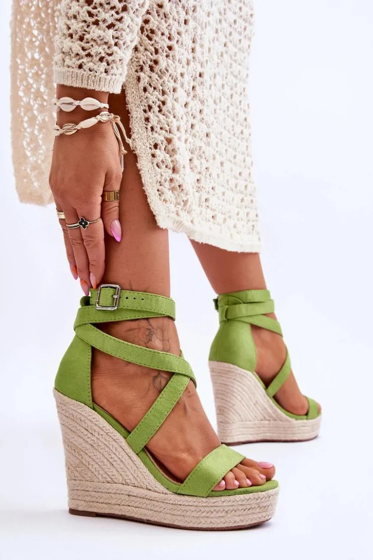 Boto Sandały Na Koturnie*Wygodne Sandały Na Wysokim Koturnie Zielone Lemira