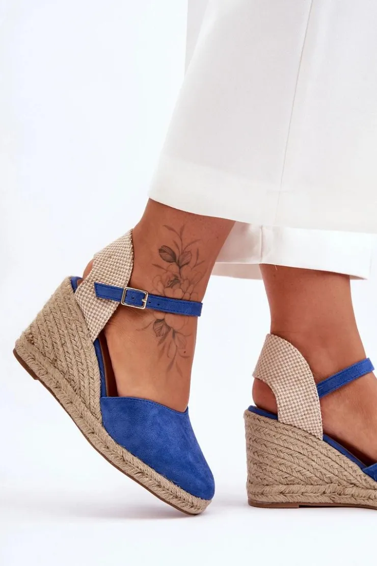 Boto Sandały Na Koturnie*Zamszowe Sandały Na Koturnie Niebieskie Selfoss
