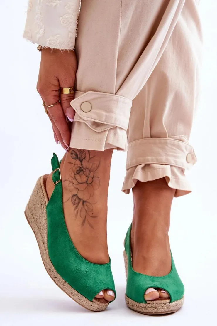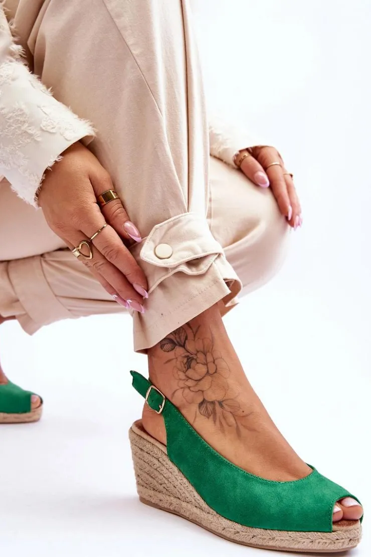 Sandały damskie zostały wykonane z eko zamszu. Posiadają regulowany pasek zapinany na sprzączkę. Sandałki osadzono na koturnie zdobionym jutową plecionką. Podeszwa jest gumowa i antypoślizgowa. Miękka, eko zamszowa wkładka zadba o Twój komfort i wygodę. Sandały świetnie sprawdzą się w letnich stylizacjach. Przy wyborze rozmiaru prosimy sugerować się tabelą rozmiarów.
