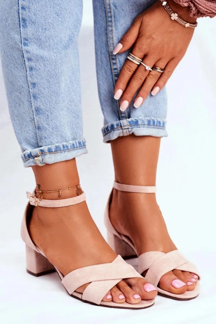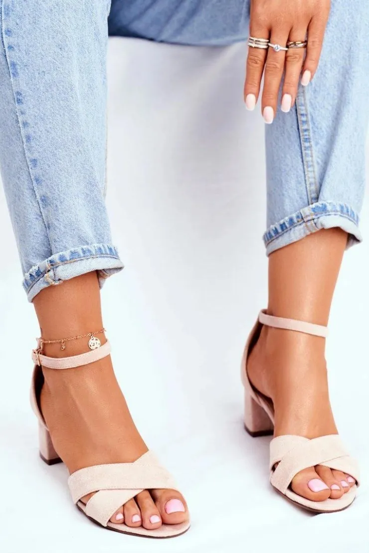 Boto Sandały Na Obcasie*Beżowe Zamszowe Sandałki na Słupku Nela