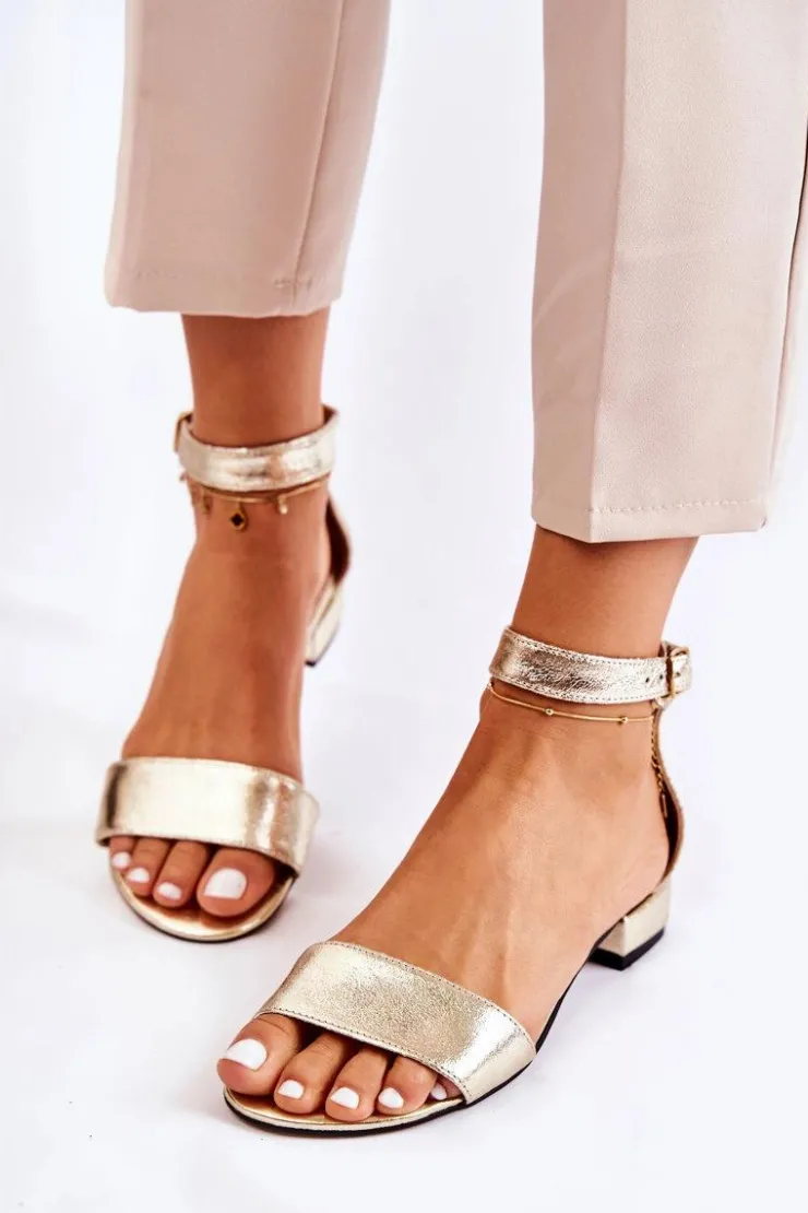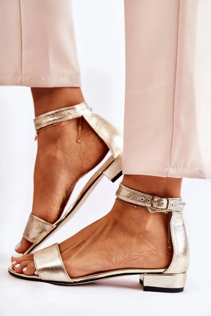 Damskie sandały osadzone na płaskim obcasie. Model ten został wykonany z naturalnej skóry z dbałością o szczegóły. Sandałki posiadają paseczek na przodzie przytrzymujący stopę przed przesuwaniem się. Miękka wkładka także została wykonana z naturalnej skóry. Regulowany paseczek zapinany wokół kostki na sprzączkę. Nosek odkryty, zaokrąglony. Koniecznie sprawdź pozostałe modele skórzanych sandałek dostępnych w naszej ofercie! Przy wyborze rozmiaru prosimy kierować tabelą rozmiarów.