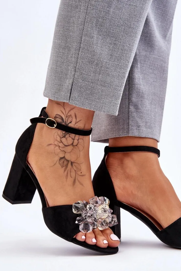 Boto Sandały Na Obcasie*Eleganckie Sandały Z Kryształami Na Obcasie Czarne Cameron