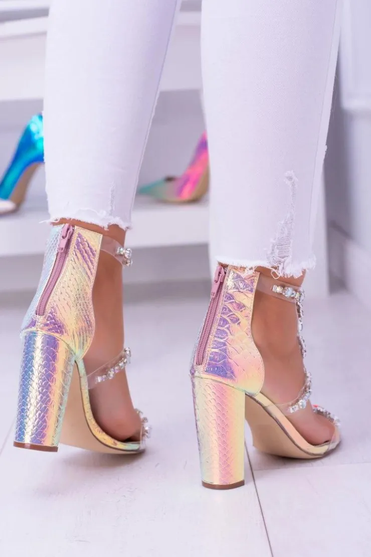 Boto Sandały Na Obcasie*Lu Boo Benzynowe Danmskie Sandały Cyrkonie Champagne Taylor