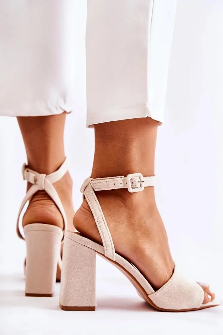 Boto Sandały Na Obcasie*Modne Sandałki Na Słupku Beżowe Salis