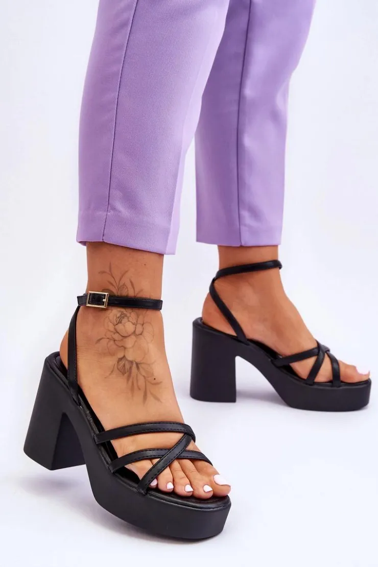 Boto Sandały Na Obcasie*Modne Sandały Na Obcasie Z Paseczkami Czarne Shemira
