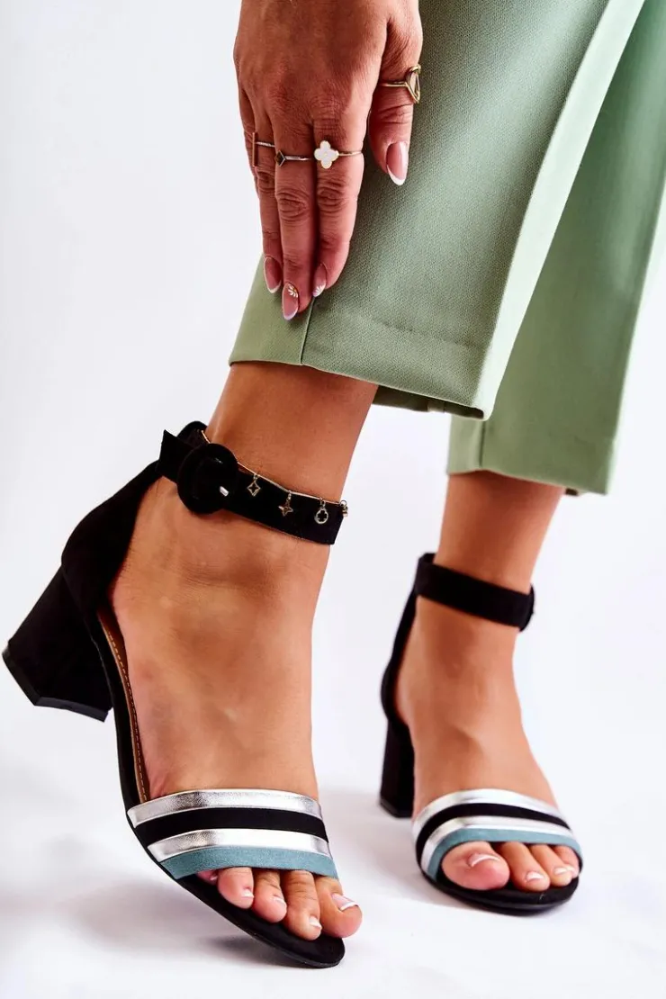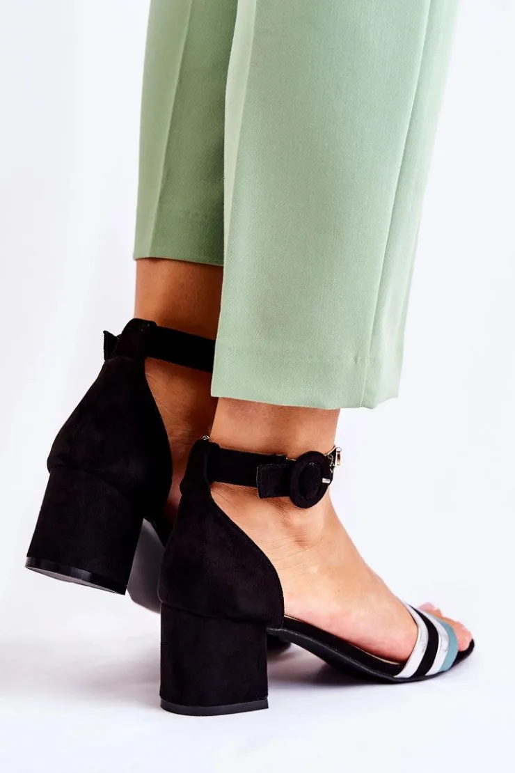 Wyjątkowe sandałki na niewysokim obcasie w postaci słupka. Wykonane z przyjemnego w dotyku eko zamszu. Posiadają usztywniany zapiętek. Wkładka wykonana z eko skóry. Nosek odkryty, zaokrąglony. Zapinane wokół kostki na regulowany pasek ze sprzączką. Ten wygodny model sprawdzi się na wiele okazji! Sandały świetnie będą pasować zarówno do sukienek, jak i eleganckich spodni. Na pewno wykorzystasz je w wielu sytuacjach! Przy wyborze rozmiaru prosimy sugerować się tabelą rozmiarów.