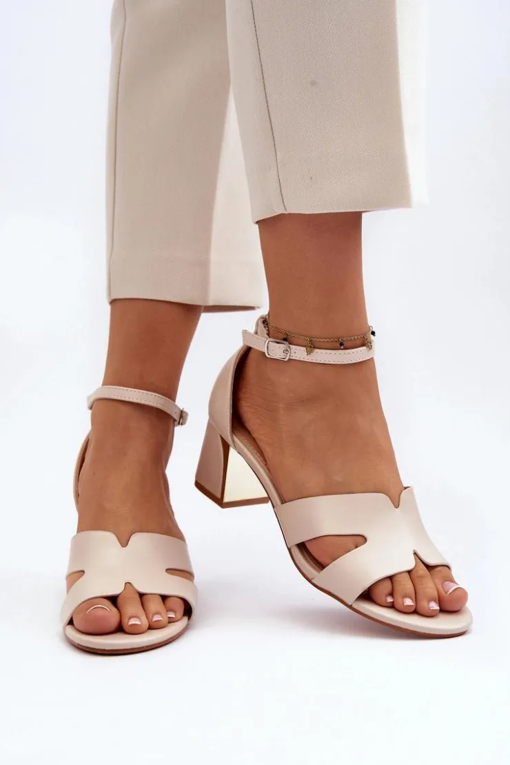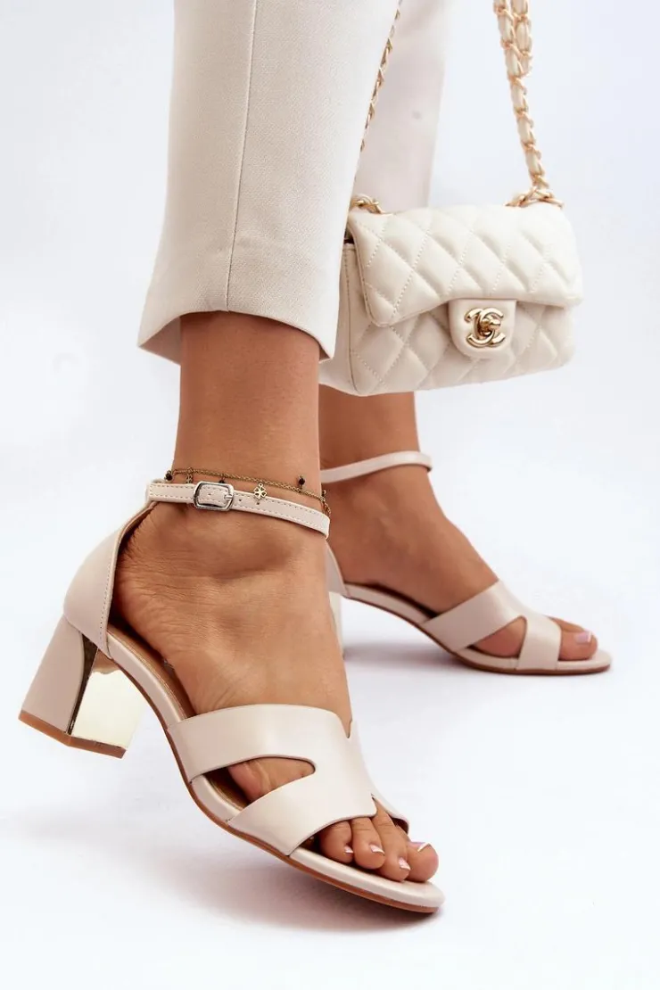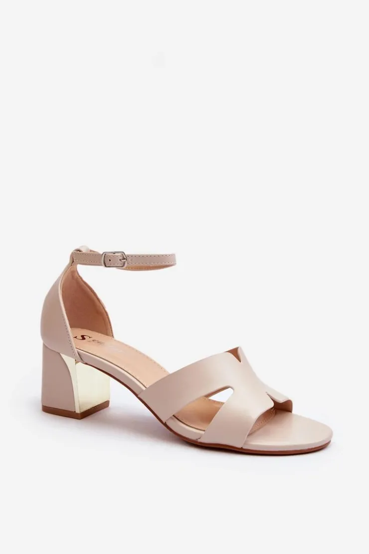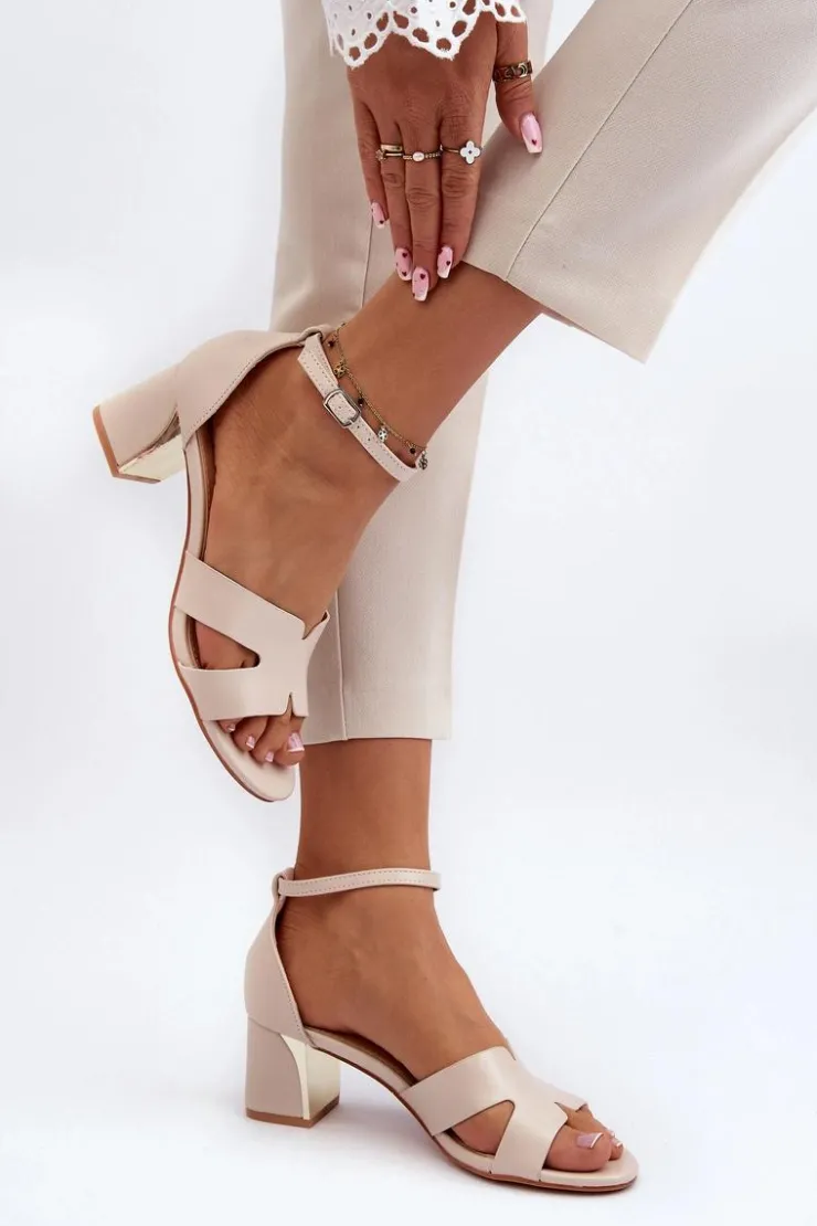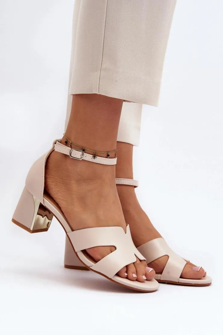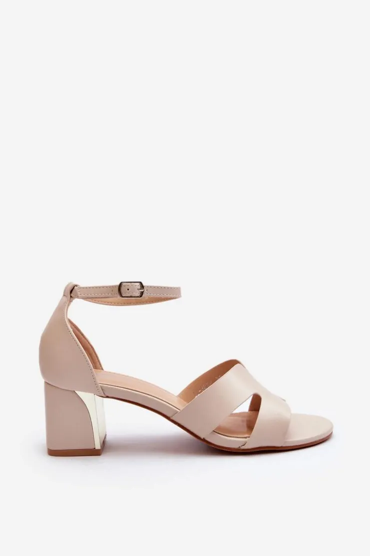 Sandały damskie osadzone na obcasie w postaci klocka z lustrzanym elementem. Zapinane na regulowany pasek ze sprzączką, łatwo dopasujesz je do swojej stopy, co zapewni dodatkowy komfort. Ten model to świetna propozycja dla każdej kobiety, która ceni sobie zarówno komfort, jak i styl w letnich stylizacjach! Przy wyborze rozmiaru prosimy sugerować się tabelą rozmiarów.