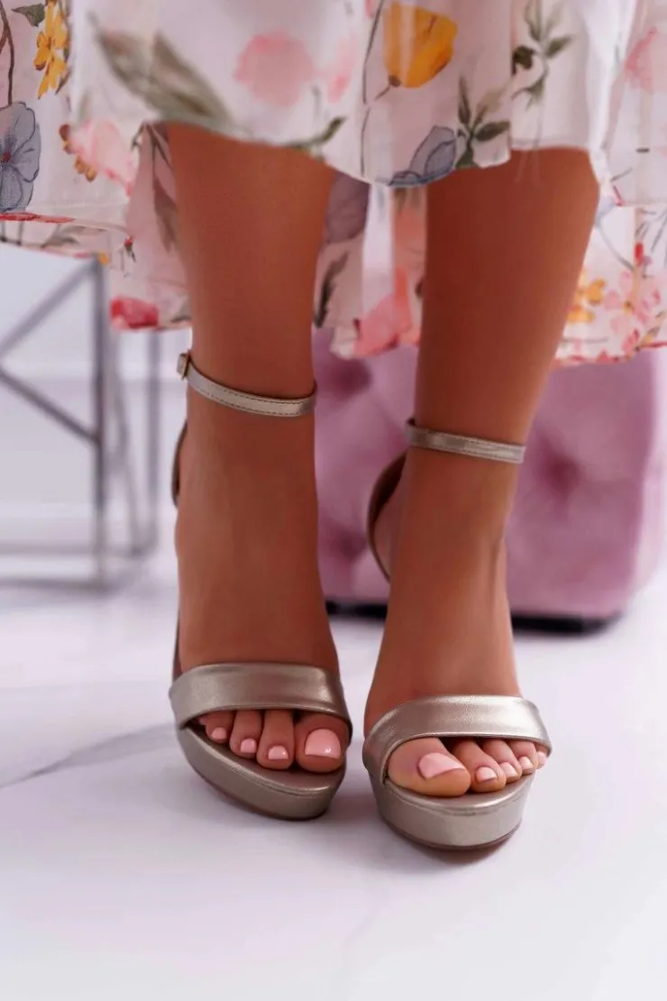 Wspaniałe eleganckie sandały, które idealnie sprawdzą się w każdej wieczorowej stylizacji. Modny wzór na 2,5cm platformie oraz stabilnym obcasie. Klasyczne zapinanie wokół kostki sprawia że stają się jeszcze bardziej eleganckie. Według opinii klientek, sandały są bardzo wygodne i świetnie leżą na nodze. Przy wyborze rozmiaru prosimy sugerować się tabelą rozmiarów, która dostępna jest po najechaniu bądź kliknięciu w dany rozmiar.