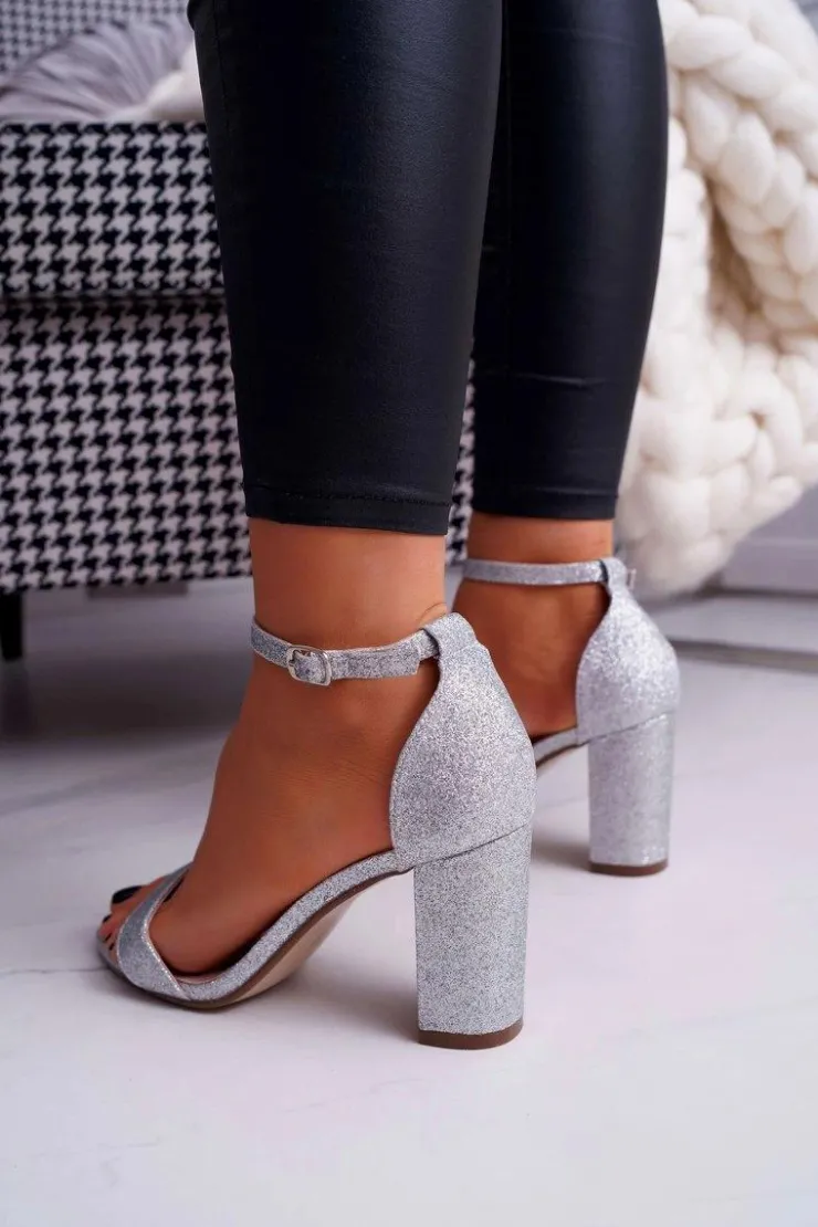 Boto Sandały Na Obcasie*Sandały Damskie Na Słupku Brokatowe Srebrne Berglat