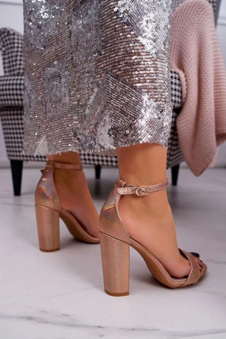 Boto Sandały Na Obcasie*Sandały Damskie Na Słupku Opalizujące Benzynowe Champagne Bipper