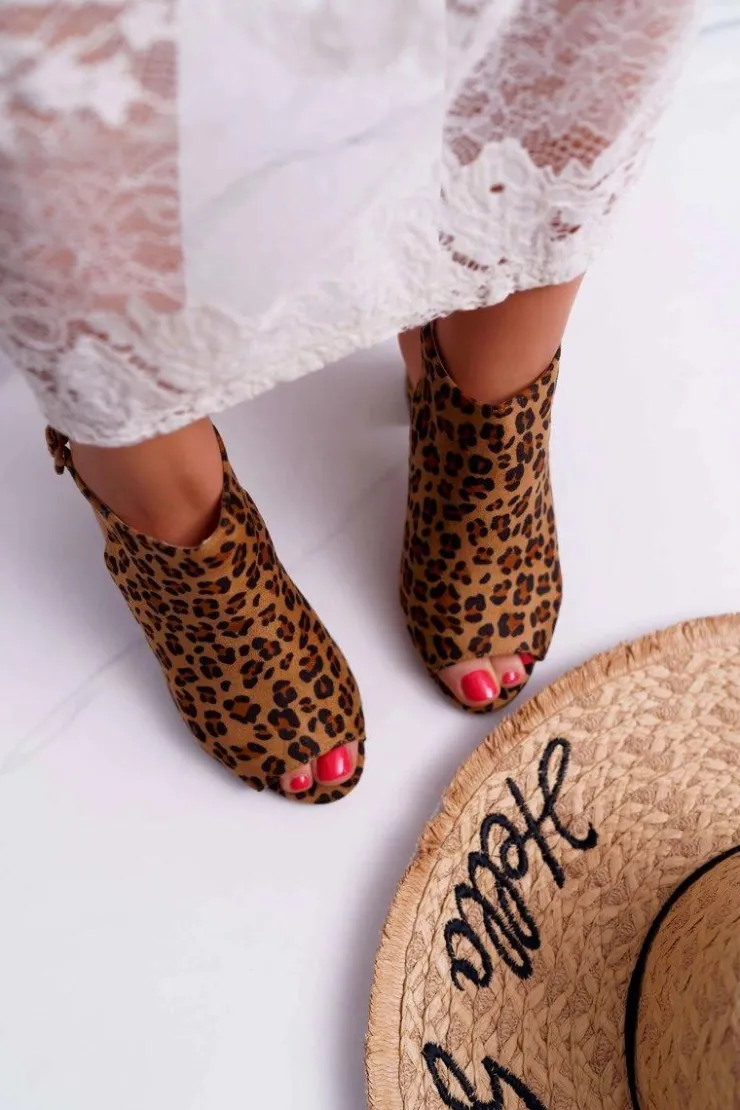 Boto Sandały Na Obcasie*Sandały Damskie Na Słupku Z Cholewką Peep Toe Leopard Esta