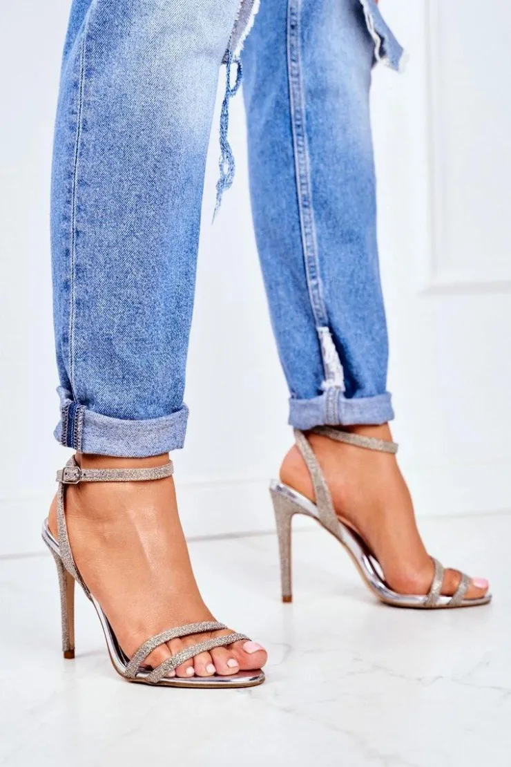 Boto Sandały Na Obcasie*Sandały Damskie Na Szpilce Brokatowe Złote Demmis
