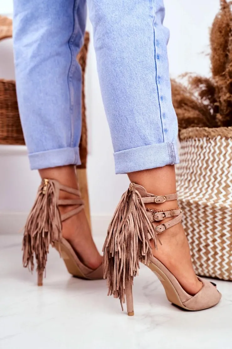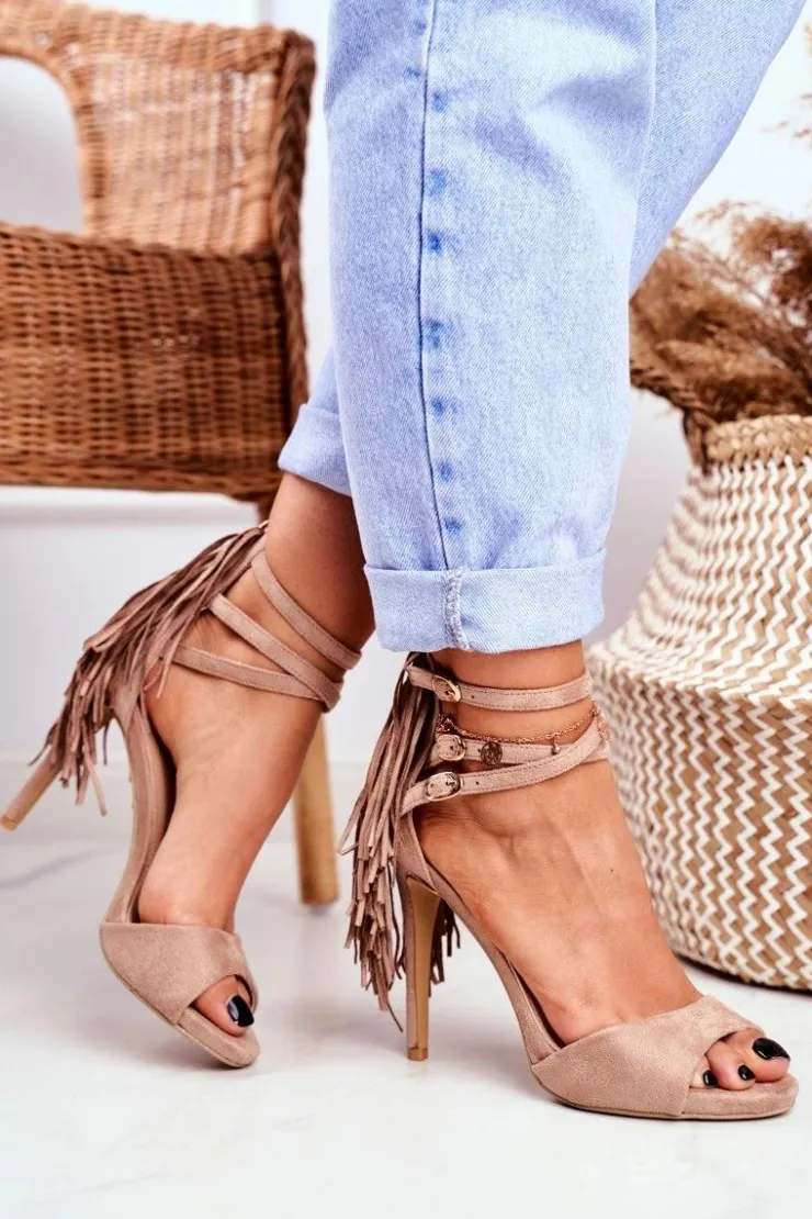 Poczuj się seksownie z sandałkami niczym z brazylijskiego karnawału! Wysoka szpilka uniesie Twoją sylwetkę, podkreślając i eksponując to, co mamy najpiękniejsze. Potrójne, klasyczne zapięcie na paseczkach dobrze przytrzymają twoją stopę, a liczne frędzle dodają odrobinę szaleństwa do Twojej stylizacji! Przy wyborze rozmiaru prosimy sugerować się tabelą rozmiarów.