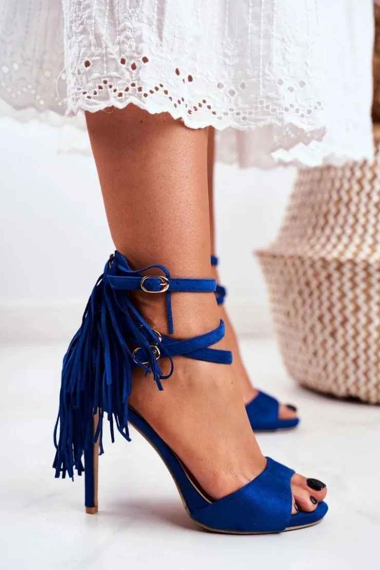 Poczuj się seksownie z sandałkami niczym z brazylijskiego karnawału! Wysoka szpilka uniesie Twoją sylwetkę, podkreślając i eksponując to, co mamy najpiękniejsze. Potrójne, klasyczne zapięcie na paseczkach dobrze przytrzymają twoją stopę, a liczne frędzle dodają odrobinę szaleństwa do Twojej stylizacji! Przy wyborze rozmiaru prosimy sugerować się tabelą rozmiarów.