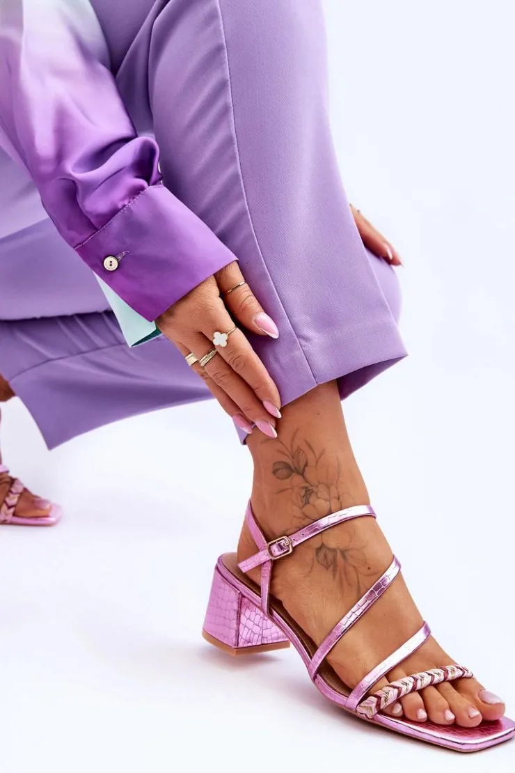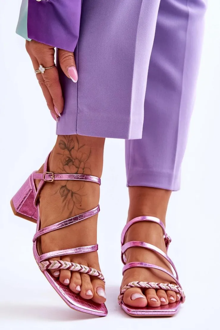 Eleganckie sandałki damskie wykonane z eko skóry. Osadzone na niskim obcasie w postaci słupka. Model ten posiada z przodu pleciony paseczek. Sandałki mają odkryty, kwadratowy, szerszy nosek. Idealne na upalne dni! Koniecznie sprawdź także pozostałe modele sandałek na naszej stronie! Przy wyborze rozmiaru prosimy sugerować się tabelą rozmiarów.