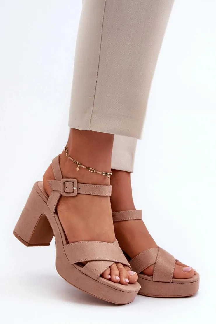 Damskie sandały wykonane z eko zamszu to połączenie elegancji i wygody. Osadzone na stabilnym słupku i platformie, zapewniają komfort noszenia przez cały dzień. Zapinane na regulowany pasek ze sprzączką, co pozwala na idealne dopasowanie do stopy. Te sandały są doskonałym wyborem do letnich stylizacji! Przy wyborze rozmiaru prosimy sugerować się tabelą rozmiarów.