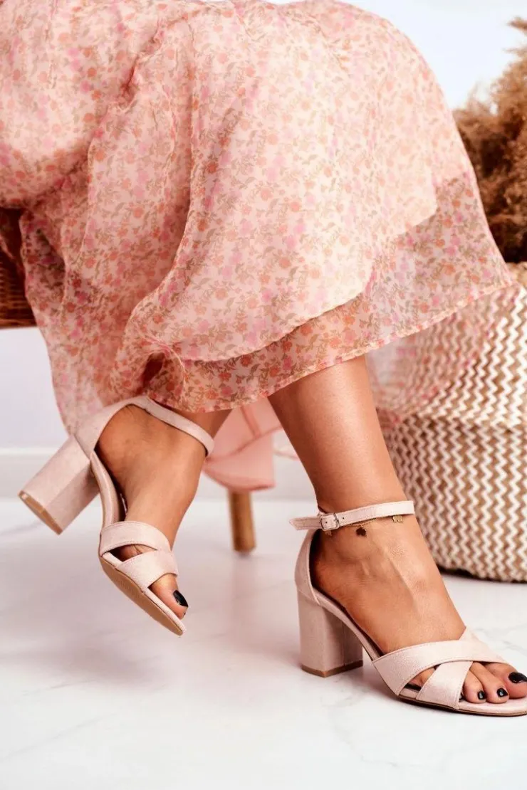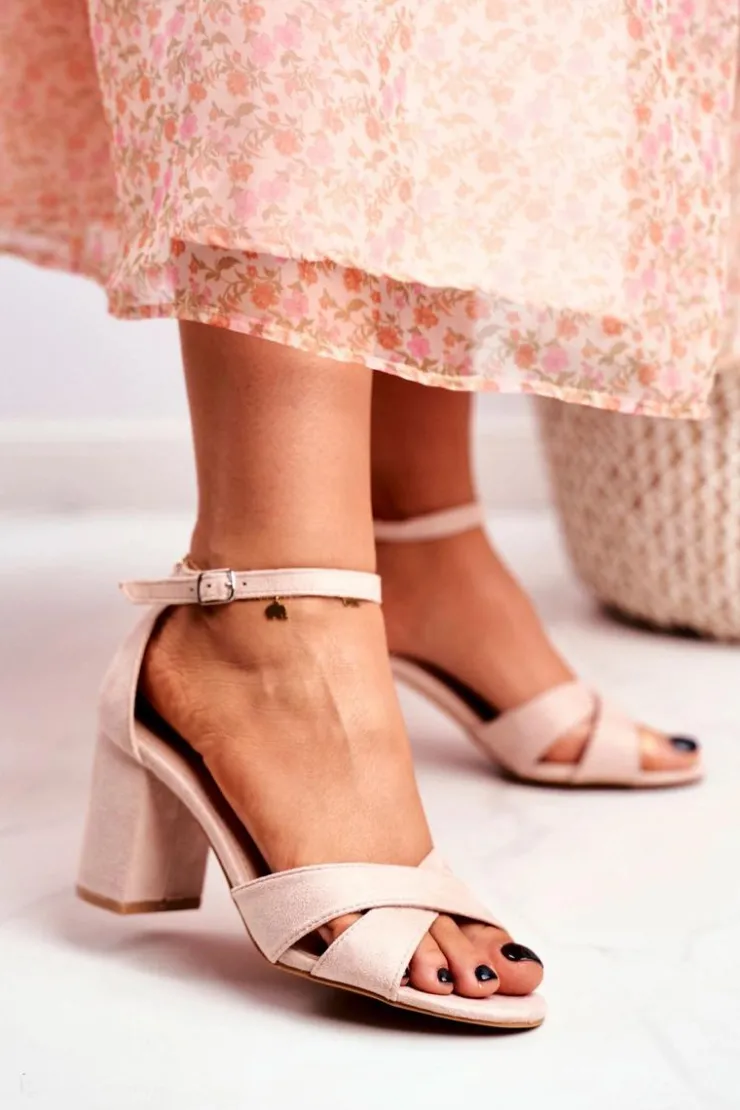 Boto Sandały Na Obcasie*Sandały Damskie Zamszowe Beżowe Lady Milion