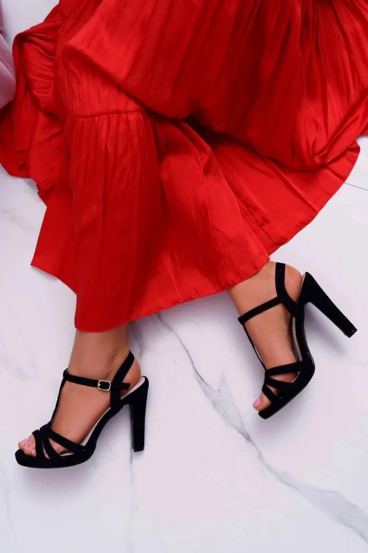 Boto Sandały Na Obcasie*Sandały Damskie Zamszowe Czarne Silela