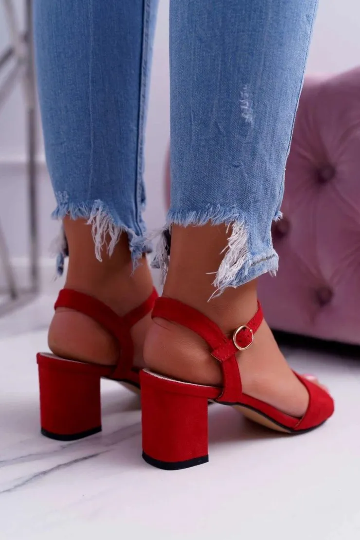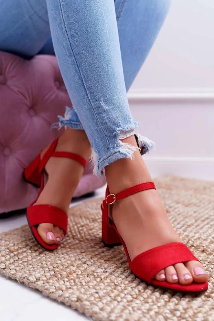 Boto Sandały Na Obcasie*Sandały Damskie Zamszowe Czerwone Galisa