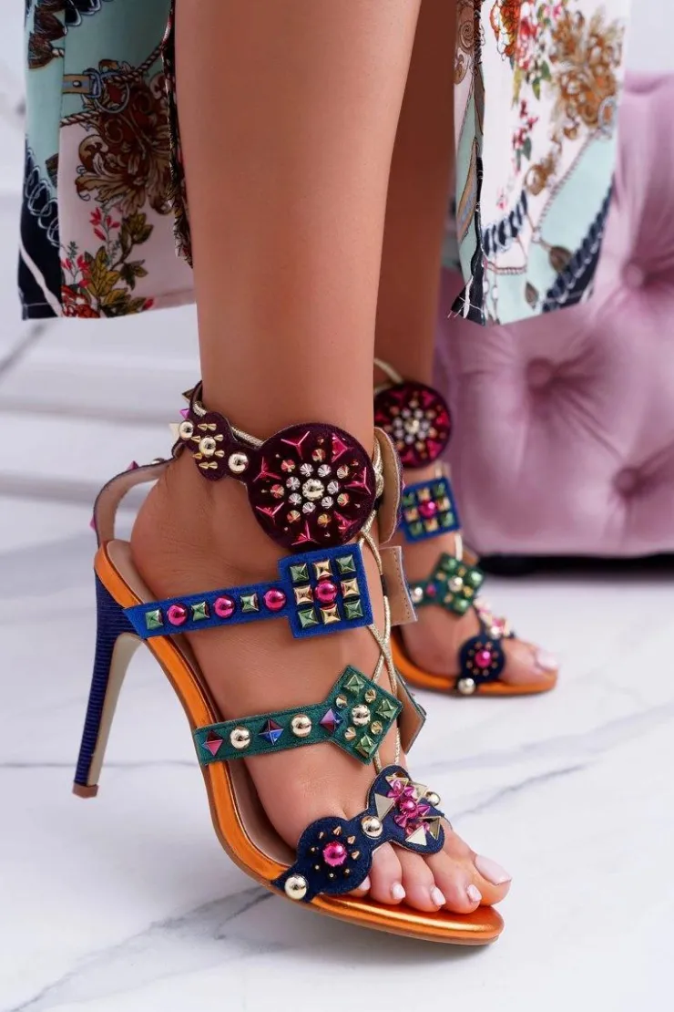 Boto Sandały Na Obcasie*Sandały Na Szpilce Dżety Ćwieki Rockers Wielokolorowe